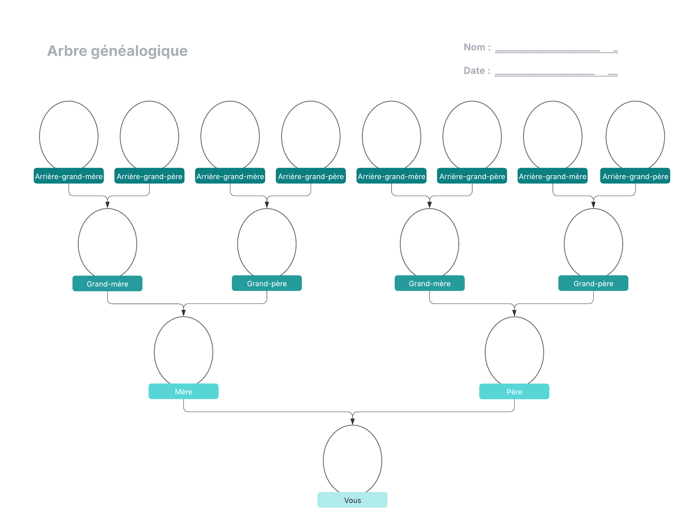 Ouvrez ce modèle d'arbre généalogique et ajoutez-y du contenu pour le personnaliser selon votre cas d'utilisation.