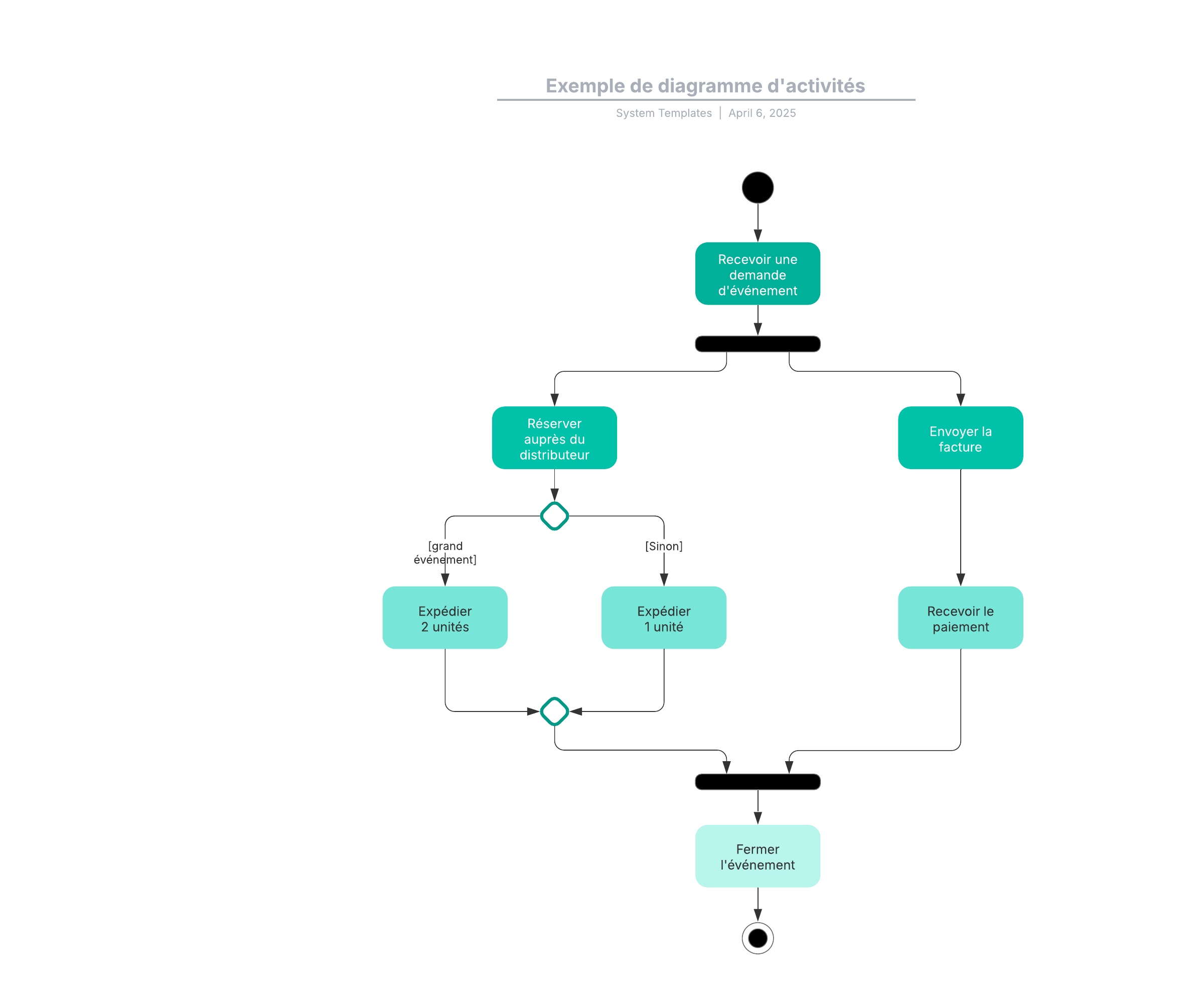 Ouvrez ce modèle pour visualiser un exemple détaillé de diagramme d'activités que vous pouvez personnaliser selon votre cas d'utilisation.