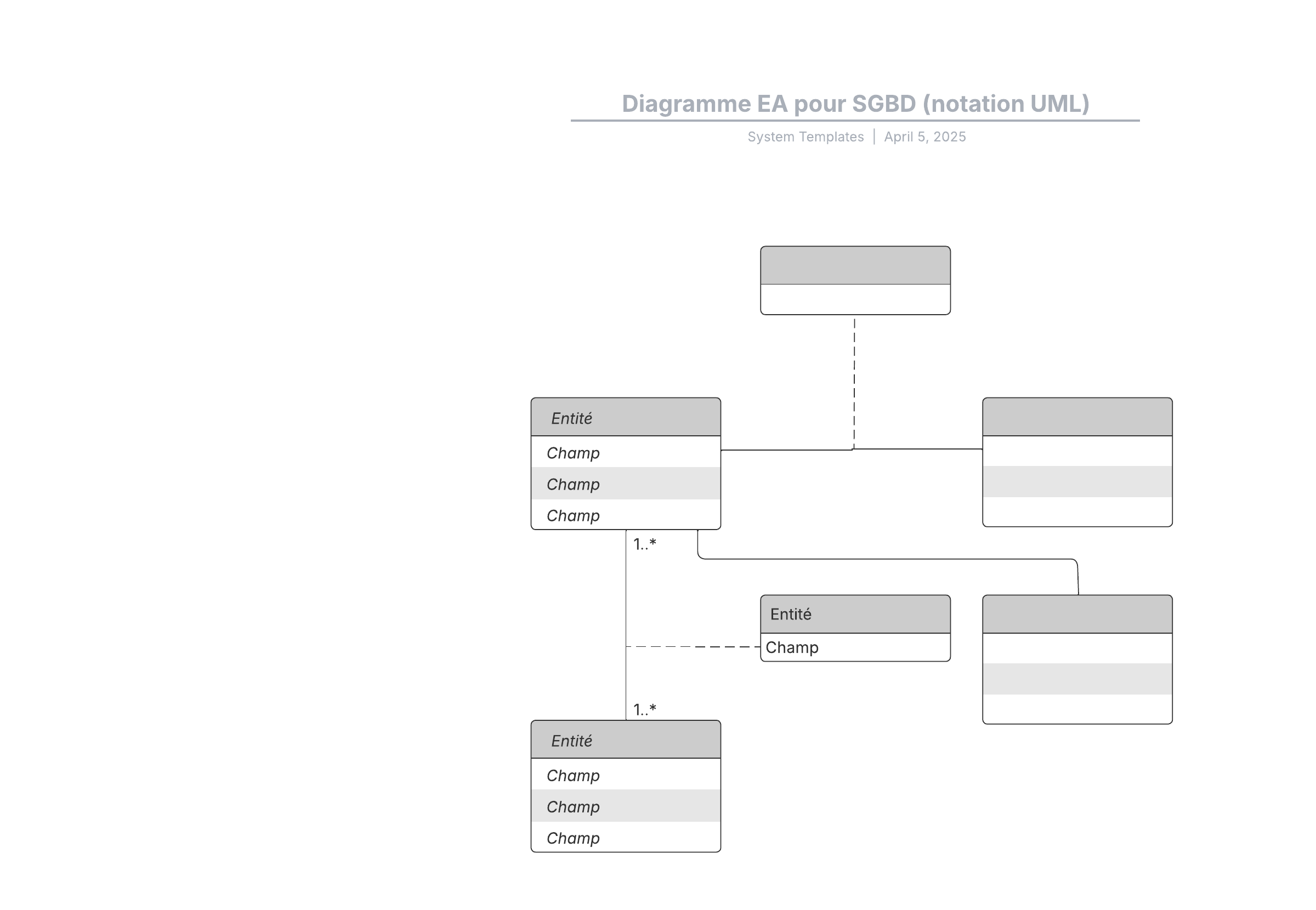 Ouvrez ce modèle de diagramme EA pour SGBD et ajoutez-y du contenu pour le personnaliser selon votre cas d'utilisation.