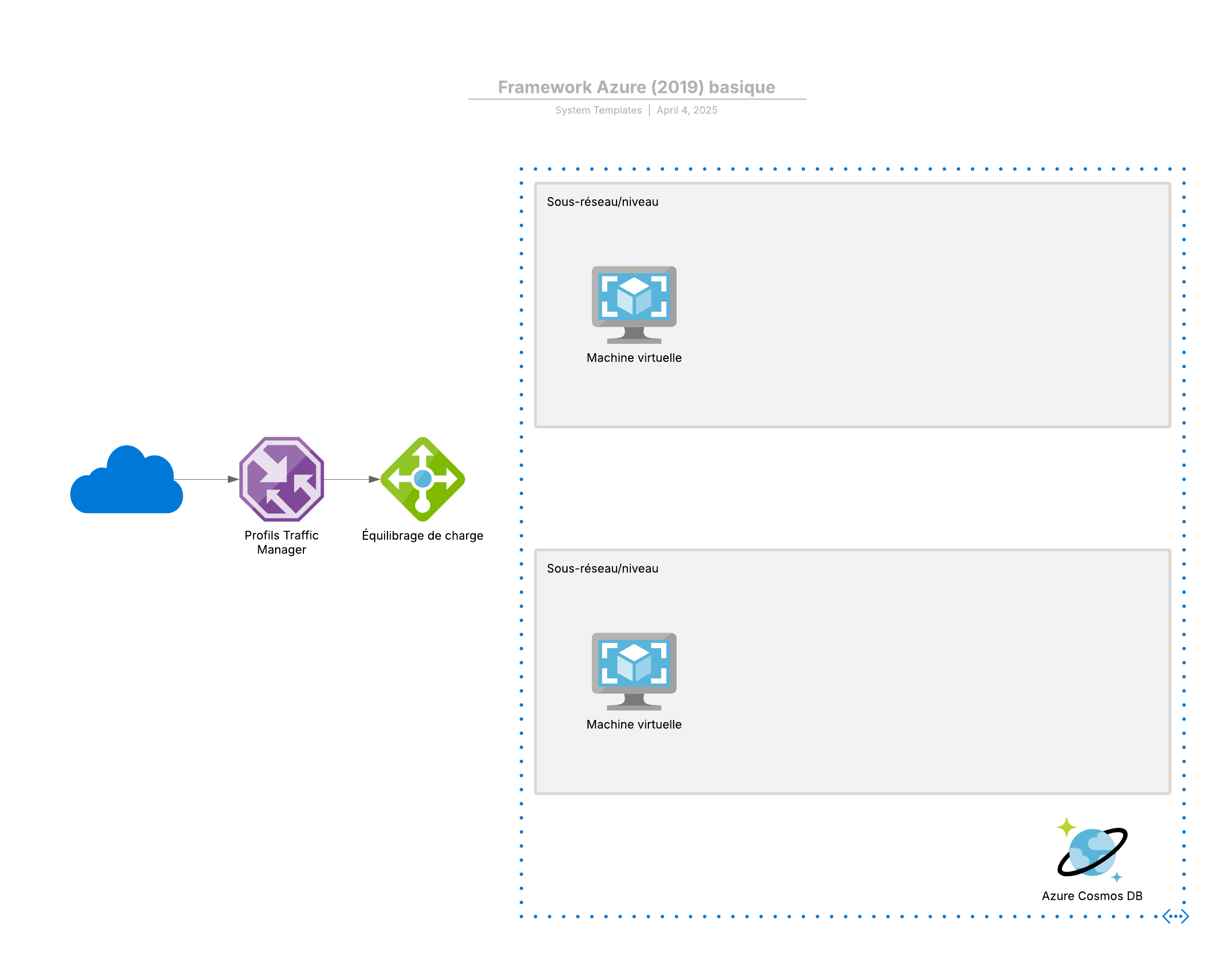 Ouvrez ce modèle pour consulter un point de départ standard pour votre architecture Azure, à personnaliser selon votre cas d'utilisation.