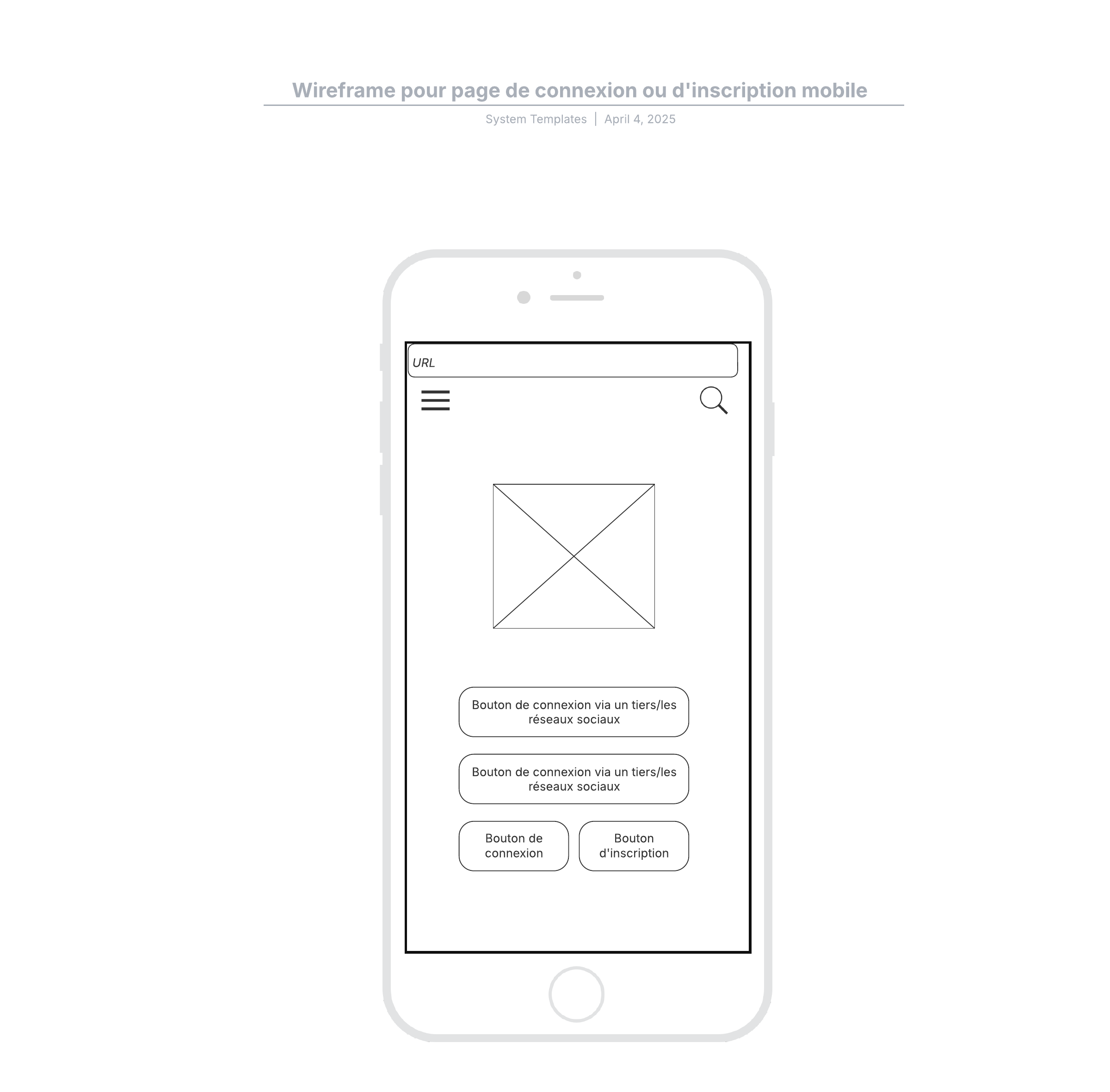 Exemple de wireframe mobile: page de connexion/inscription