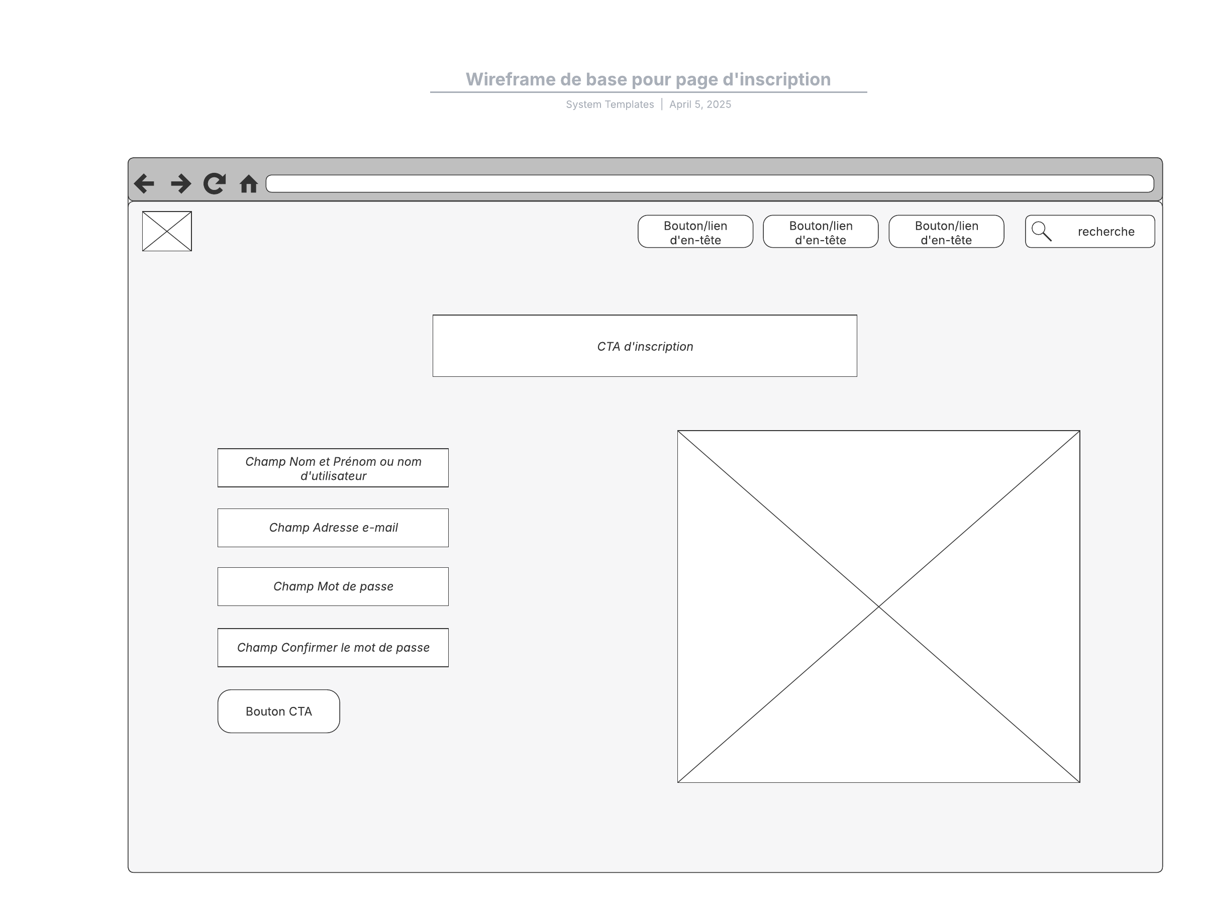 Ce modèle basique de wireframe pour page d'inscription peut vous aider à :