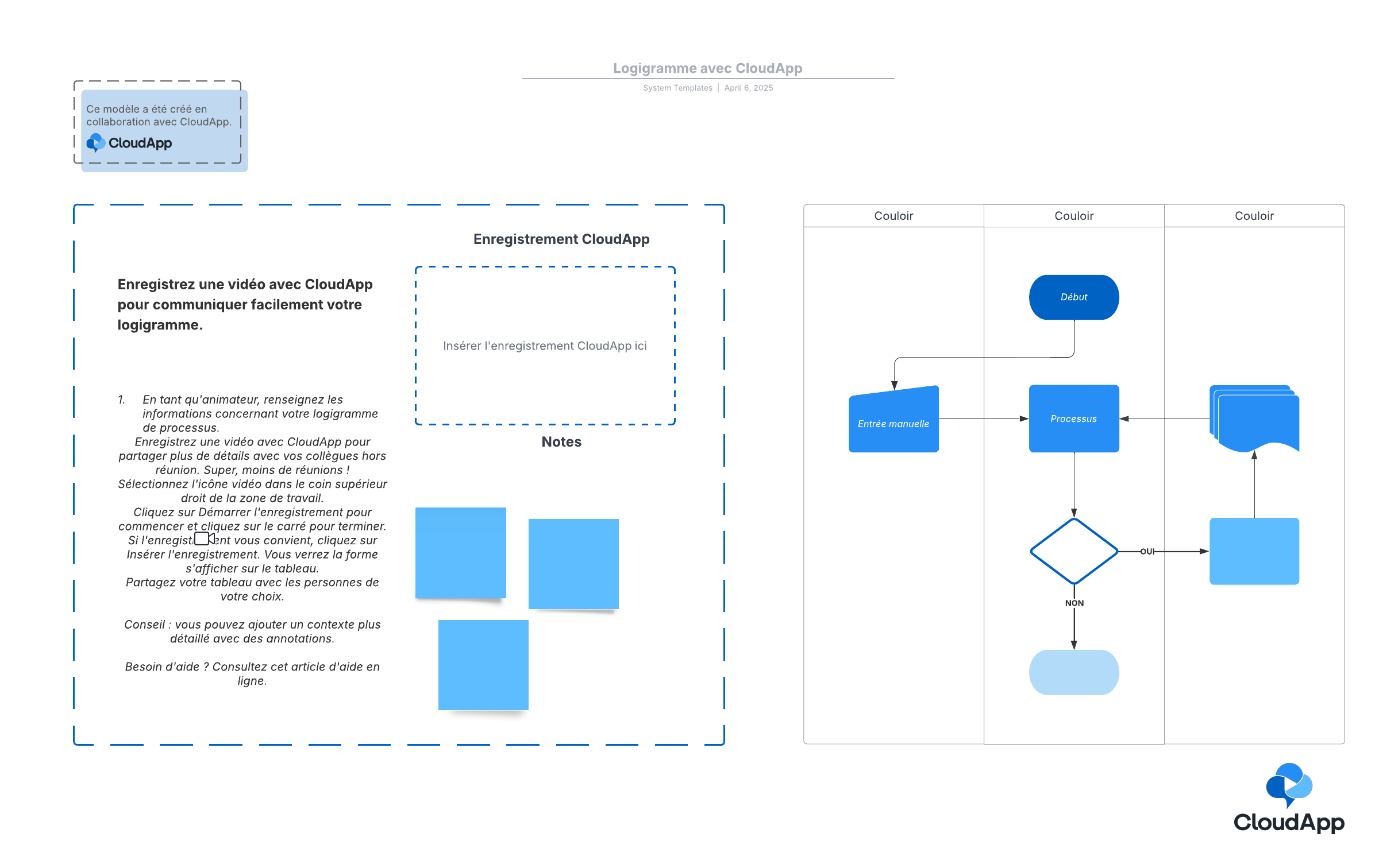 Ouvrez ce modèle de logigramme et ajoutez-y du contenu pour le personnaliser avec CloudApp selon votre cas d'utilisation.