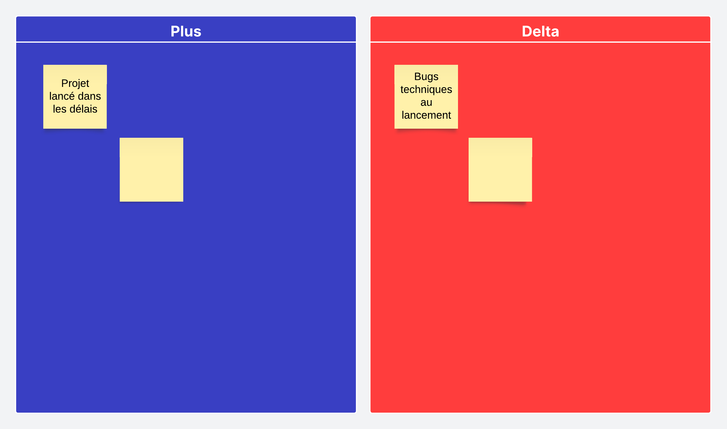 Utilisez ce modèle Plus delta pour représenter visuellement différents avantages et inconvénients d'une équipe ou d'un projet.