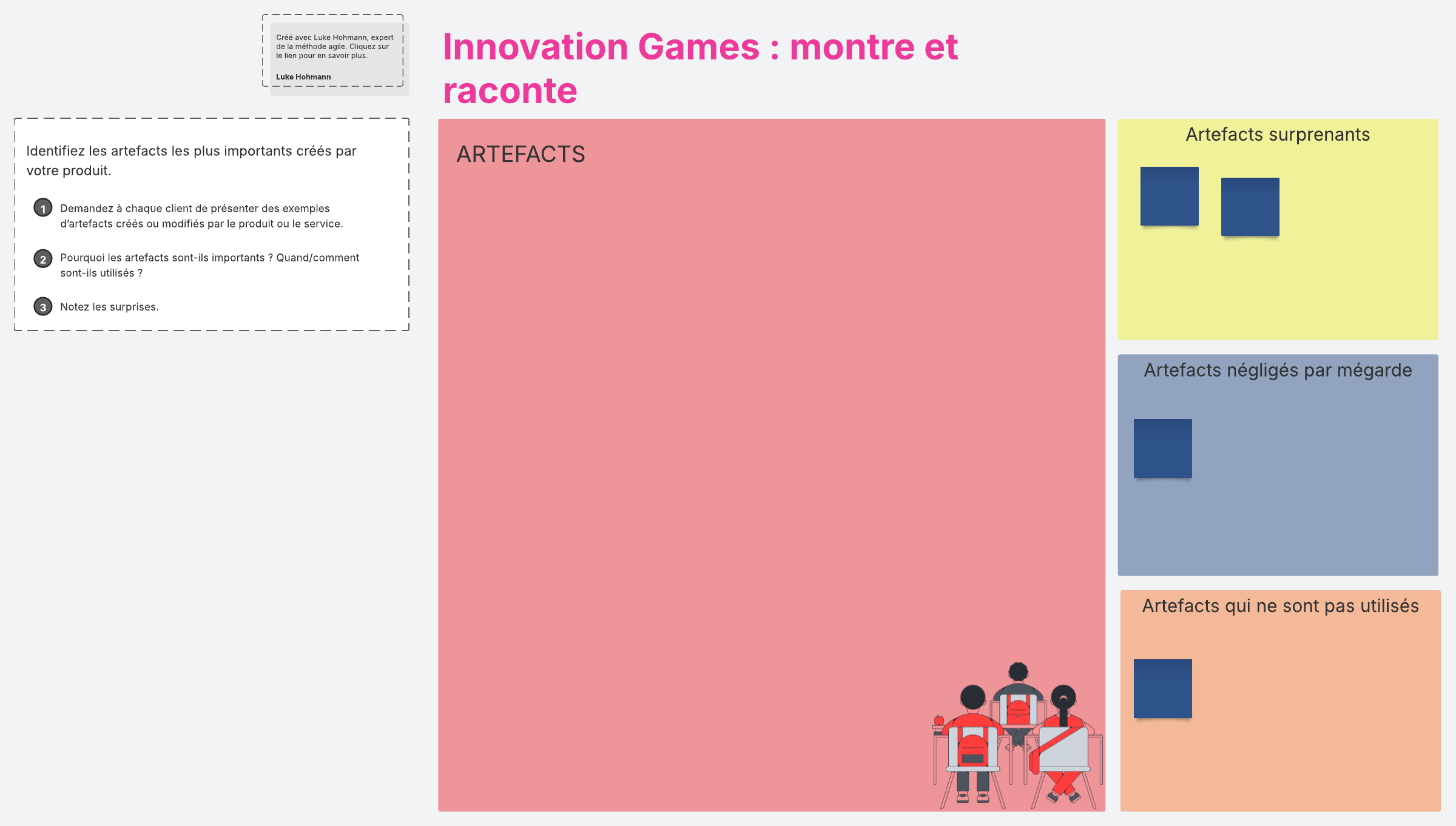 Utilisez cette activité « Montre et raconte » issue des Innovation Games pour identifier les artefacts les plus importants aux yeux de vos clients.