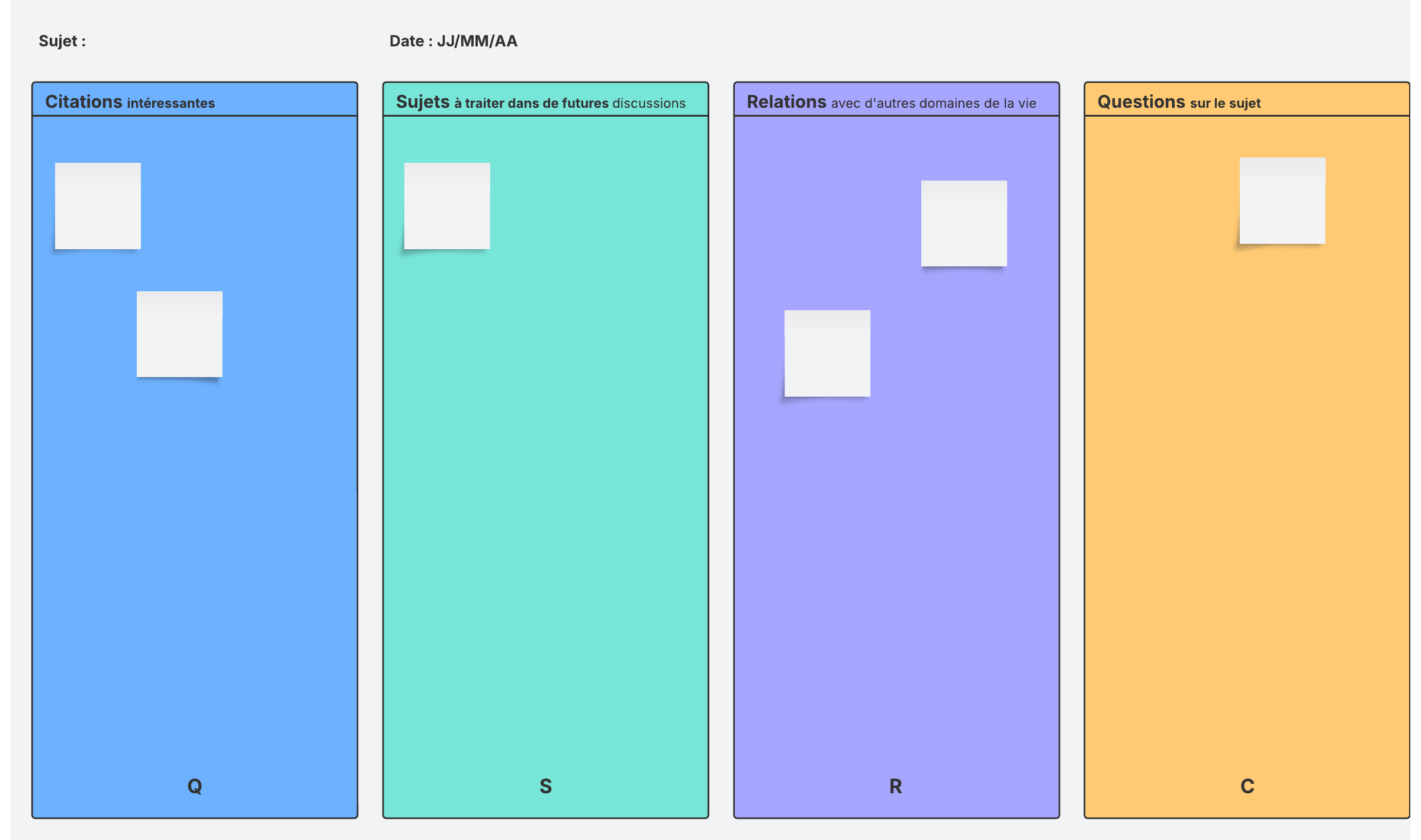 Utilisez ce modèle pour noter les informations pertinentes d'une réunion, d'une lecture ou d'un séminaire et vous préparer à les partager avec votre équipe.