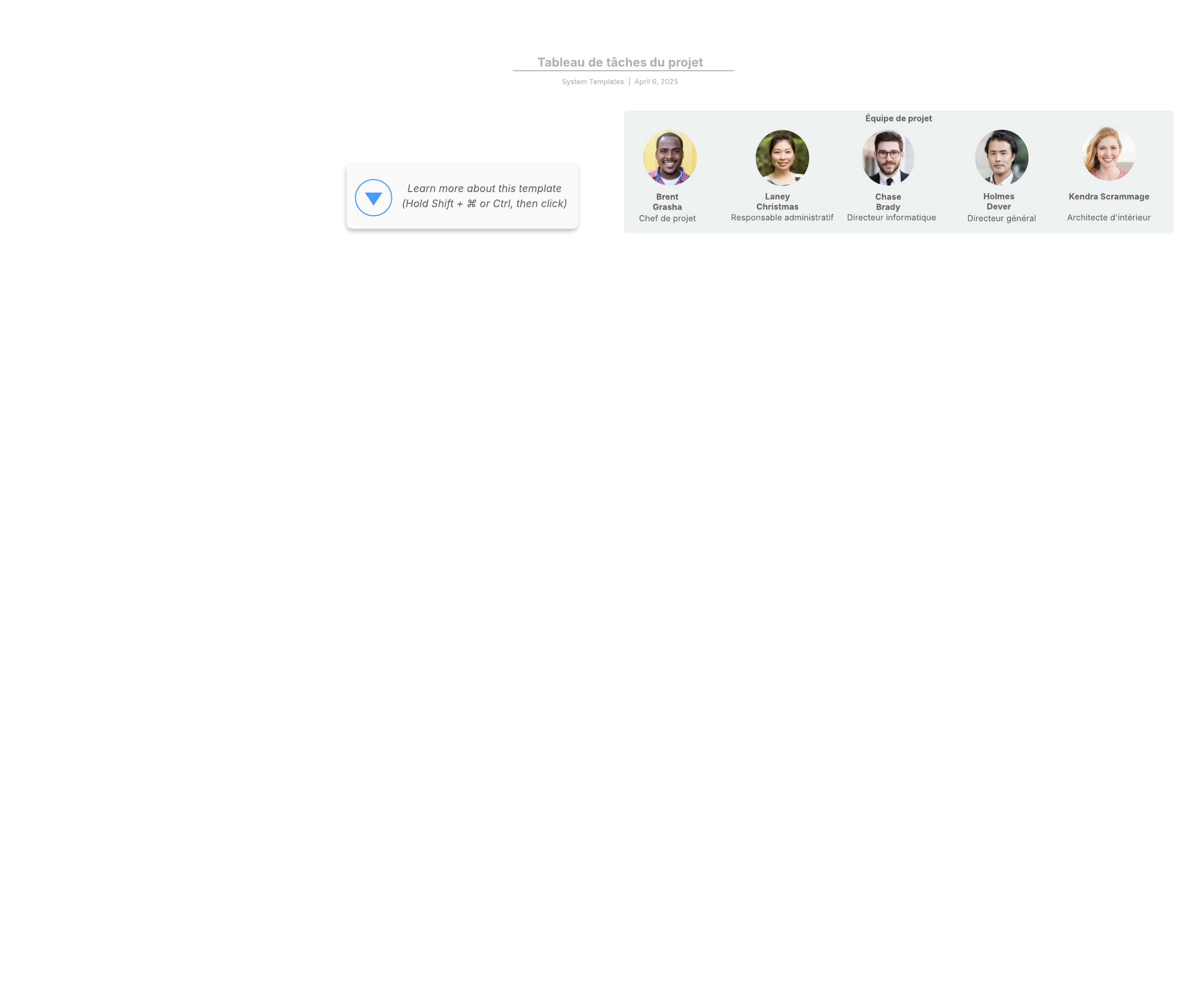 Ouvrez ce modèle pour afficher un exemple détaillé de tableau de plannification, à personnaliser selon votre cas d'utilisation.