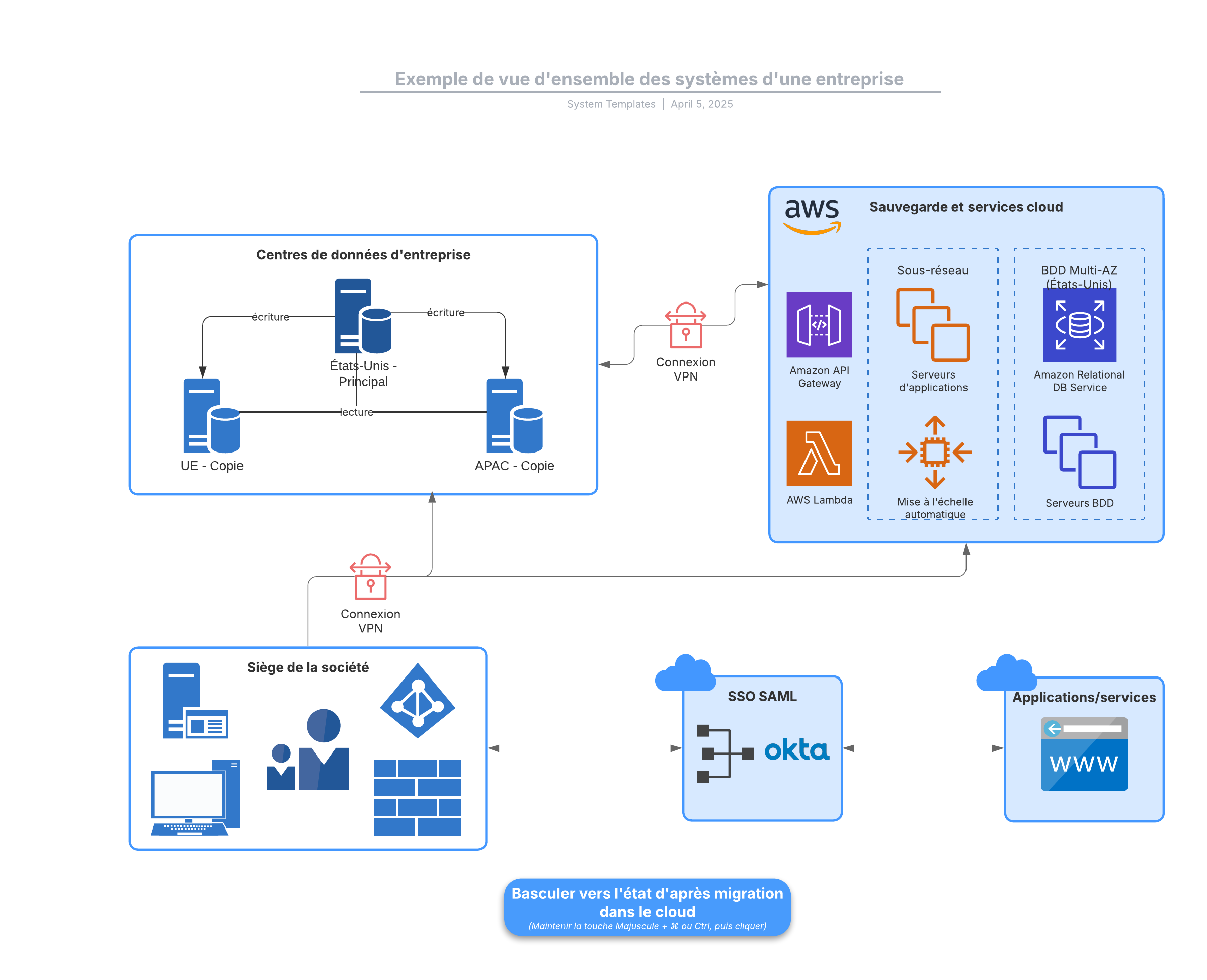 Ouvrez ce modèle pour afficher une vue d'ensemble des systèmes d'une entreprise, à personnaliser selon votre cas d'utilisation.