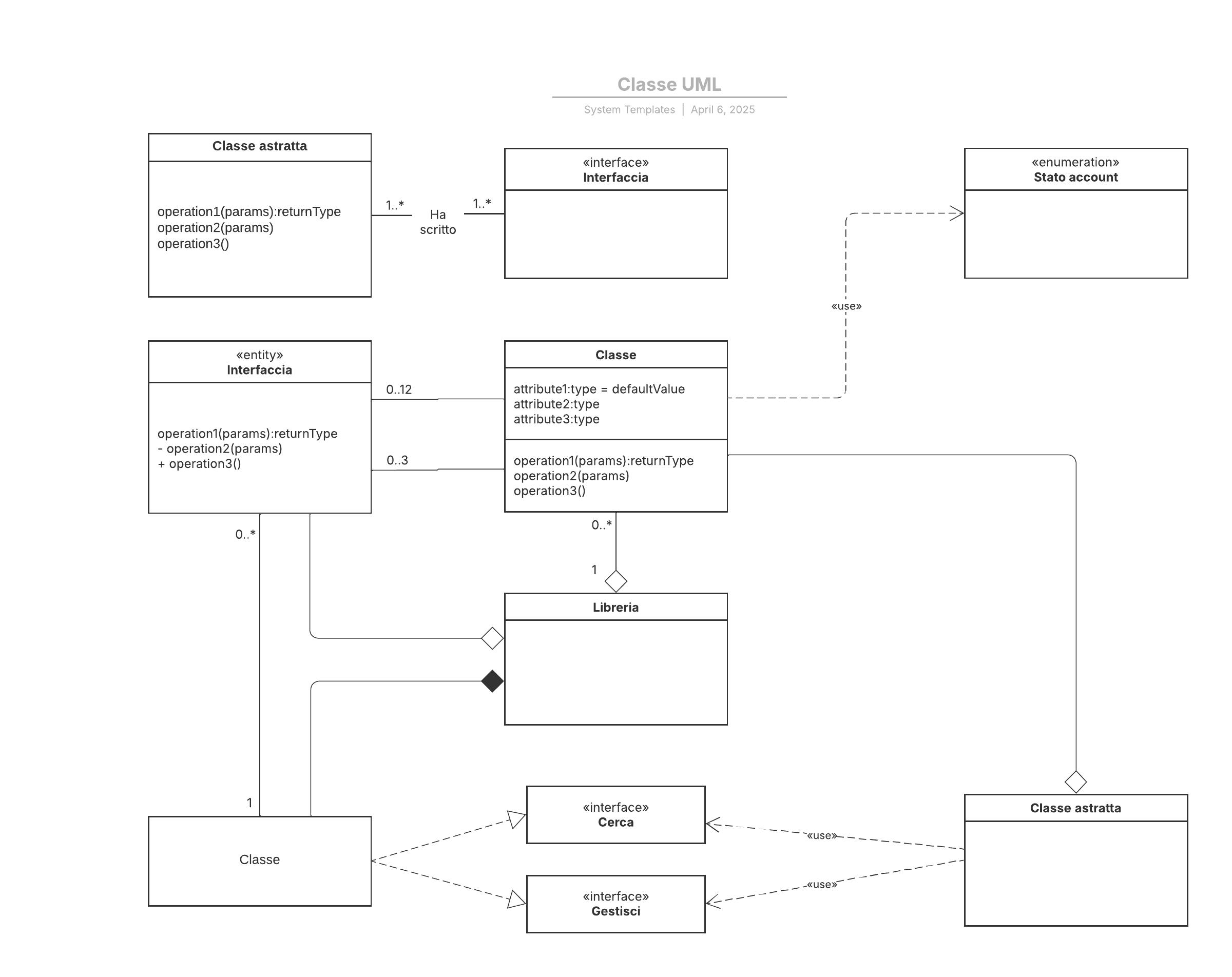 Apri questo modello e aggiungi contenuti per adattare questo diagramma delle classi UML al tuo caso d'uso.