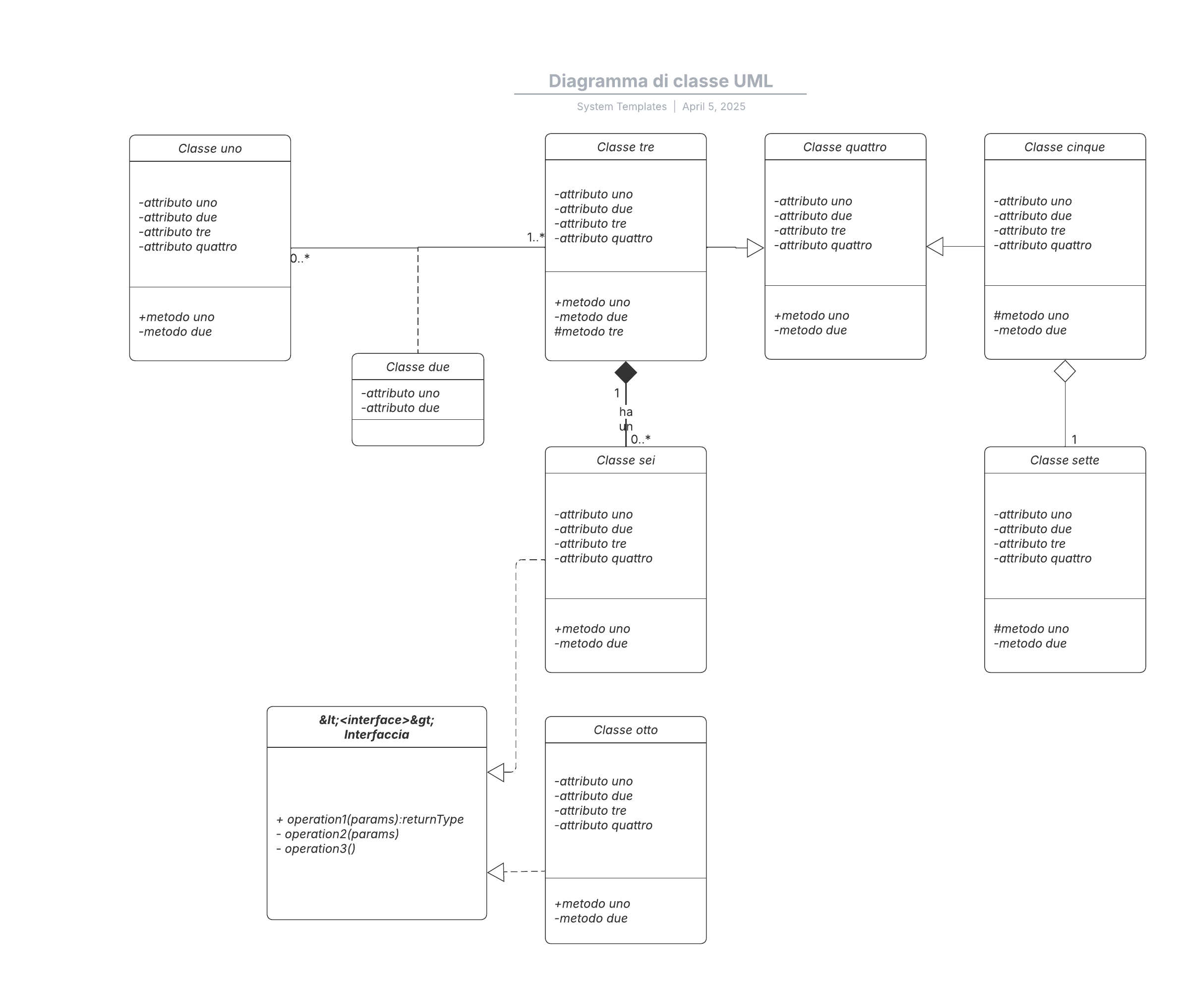 Apri questo modello e aggiungi contenuti per adattare questo diagramma delle classi UML al tuo caso d'uso.
