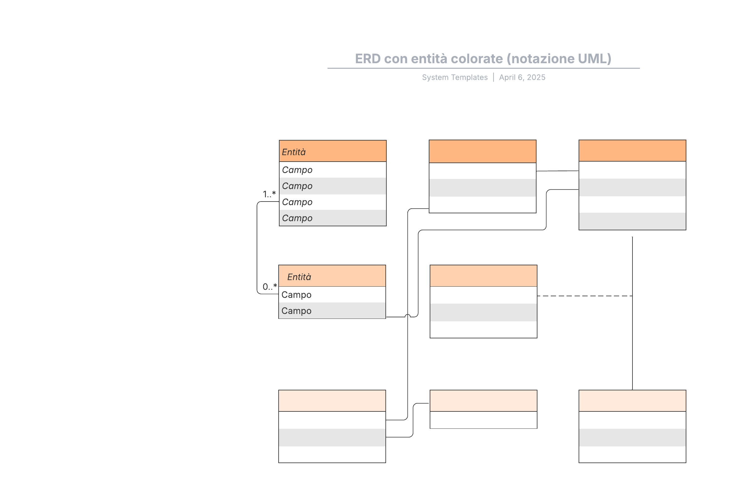 Apri questo modello e aggiungi contenuti per adattare questo diagramma entità relazione al tuo caso d'uso.