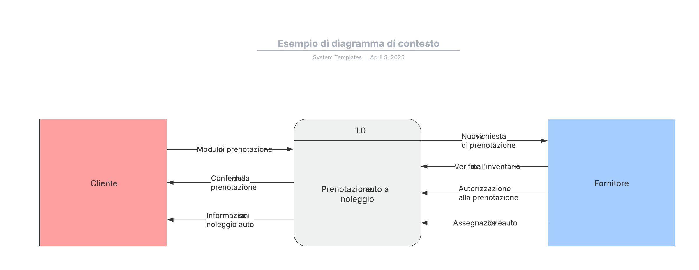 Apri questo modello per visualizzare l'esempio dettagliato di un diagramma di flusso di dati di contesto, che puoi personalizzare in base al tuo caso d'uso.