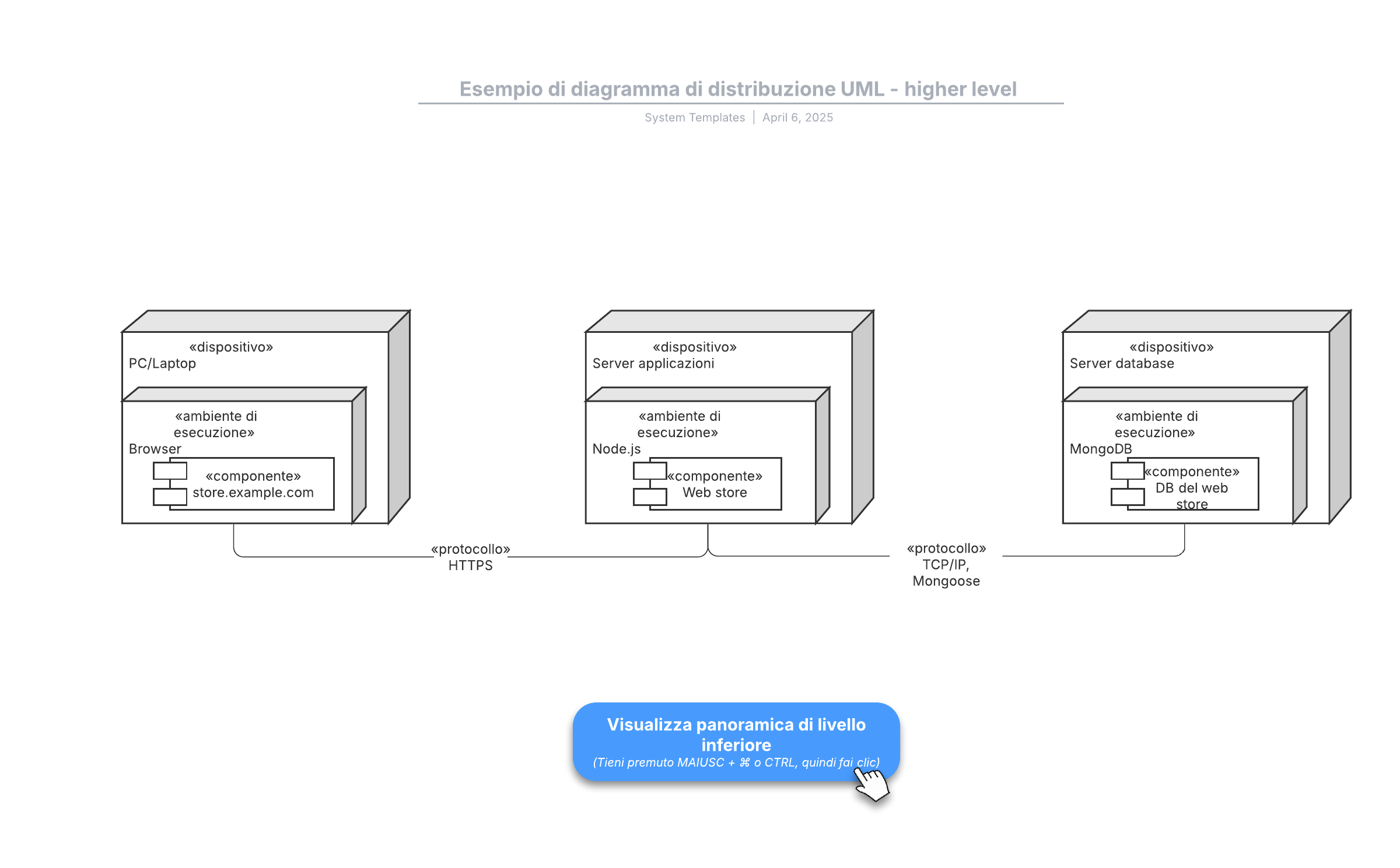 Apri questo modello per visualizzare l'esempio dettagliato di un diagramma di distribuzione UML, che puoi personalizzare in base al tuo caso d'uso.