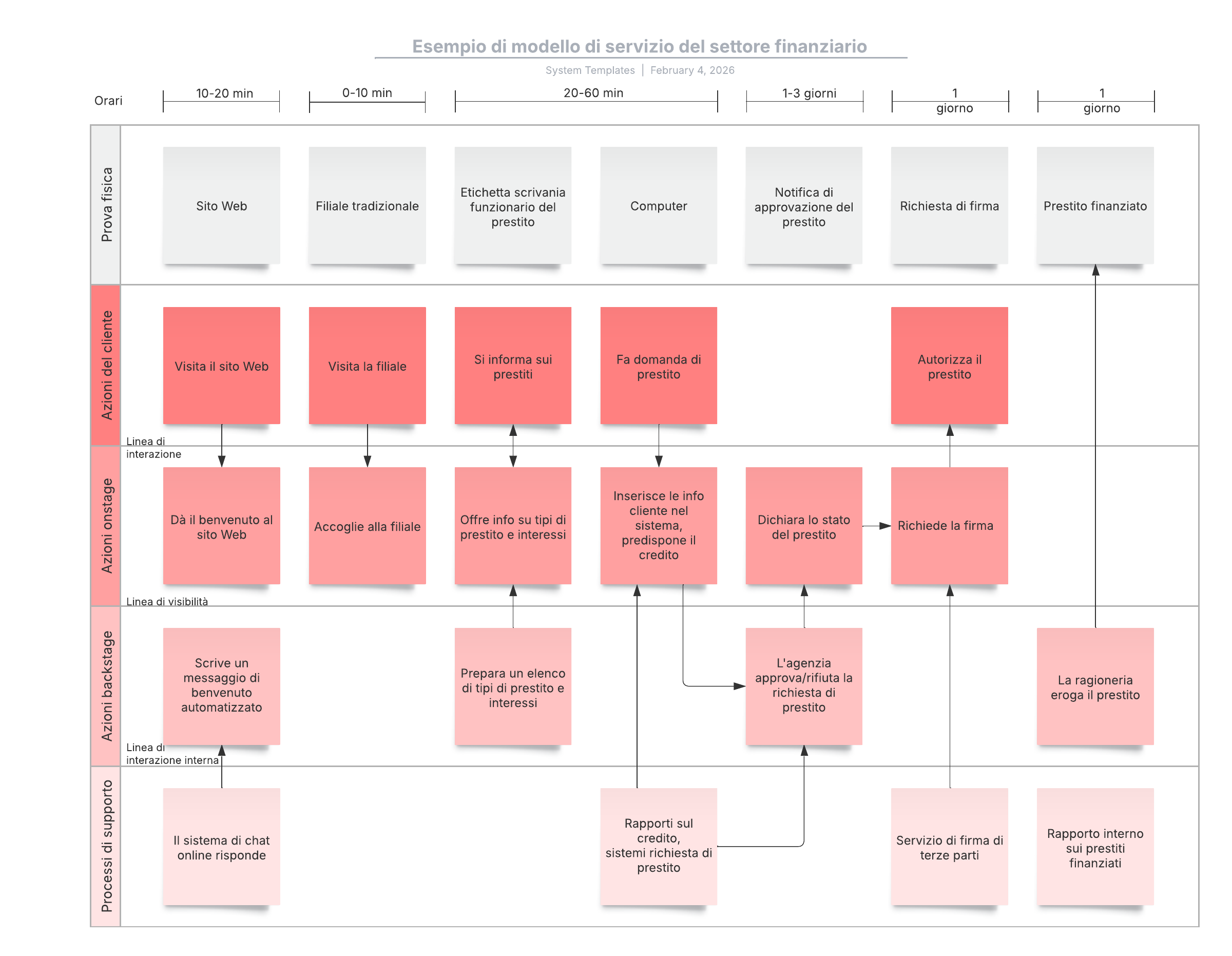 Questo esempio di modello di servizio del settore finanziario può aiutarti a: