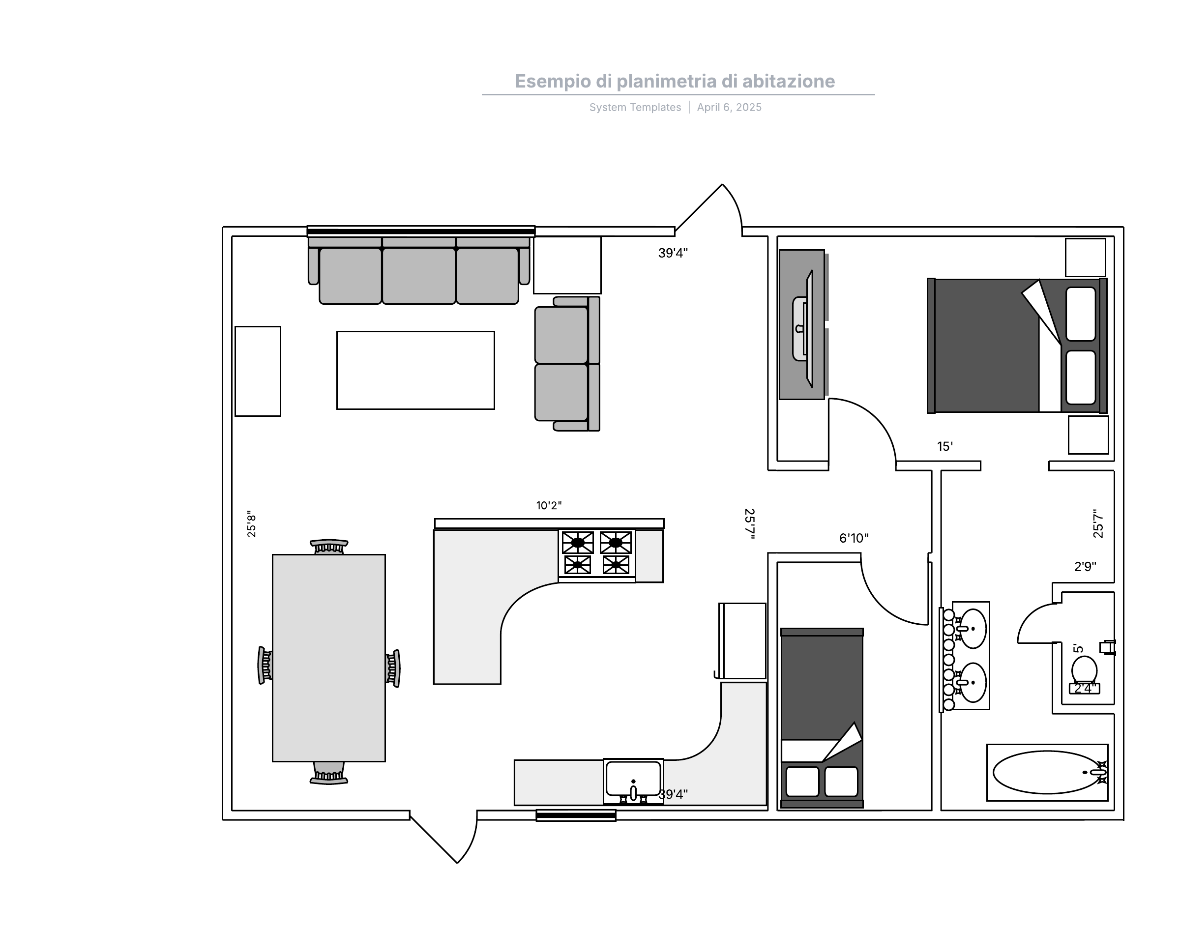 Apri questo modello per visualizzare un esempio dettagliato di una planimetria di abitazione, che puoi personalizzare in base al tuo caso d'uso.