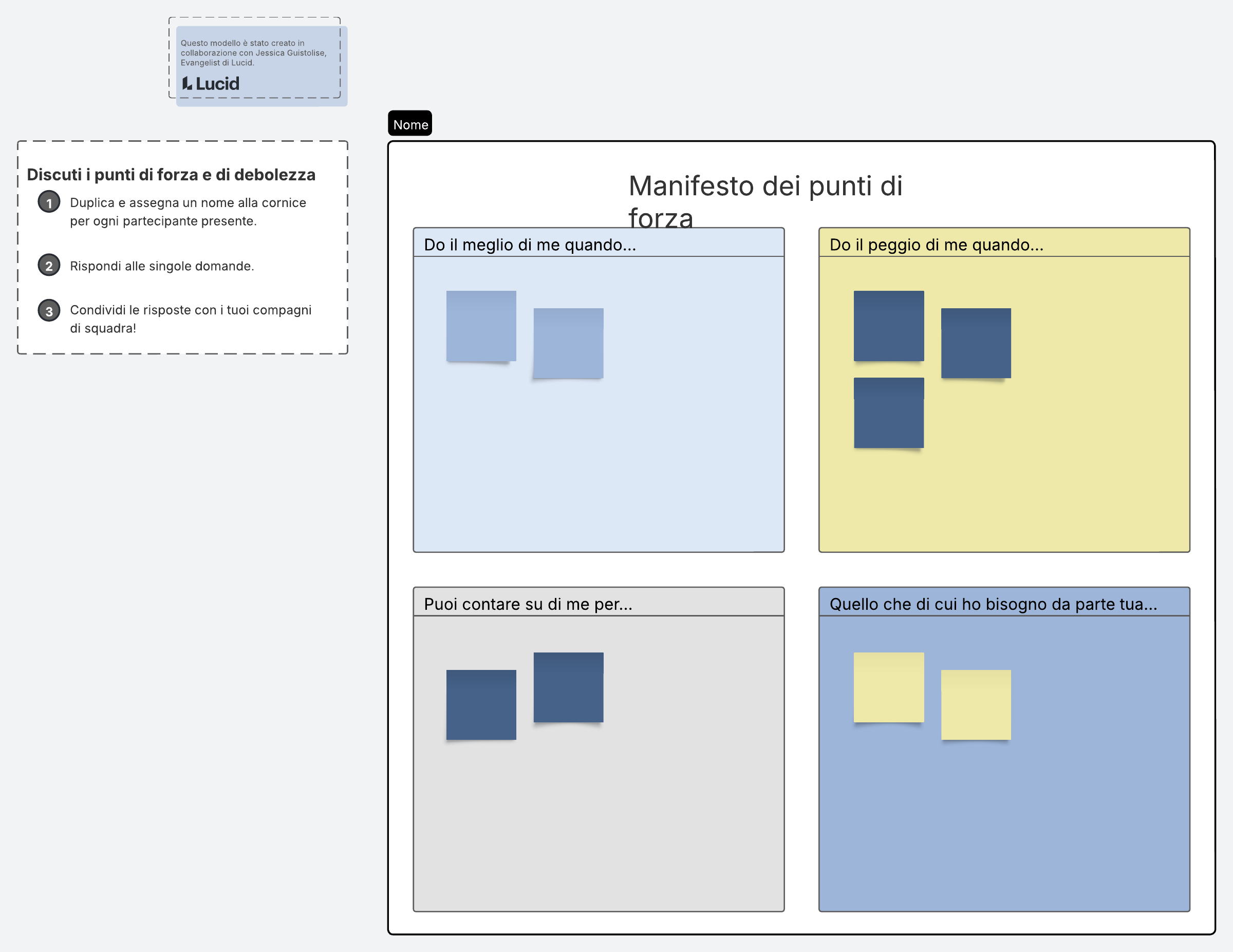 Discutere dei punti di forza e di debolezza individuali durante un esercizio in team.