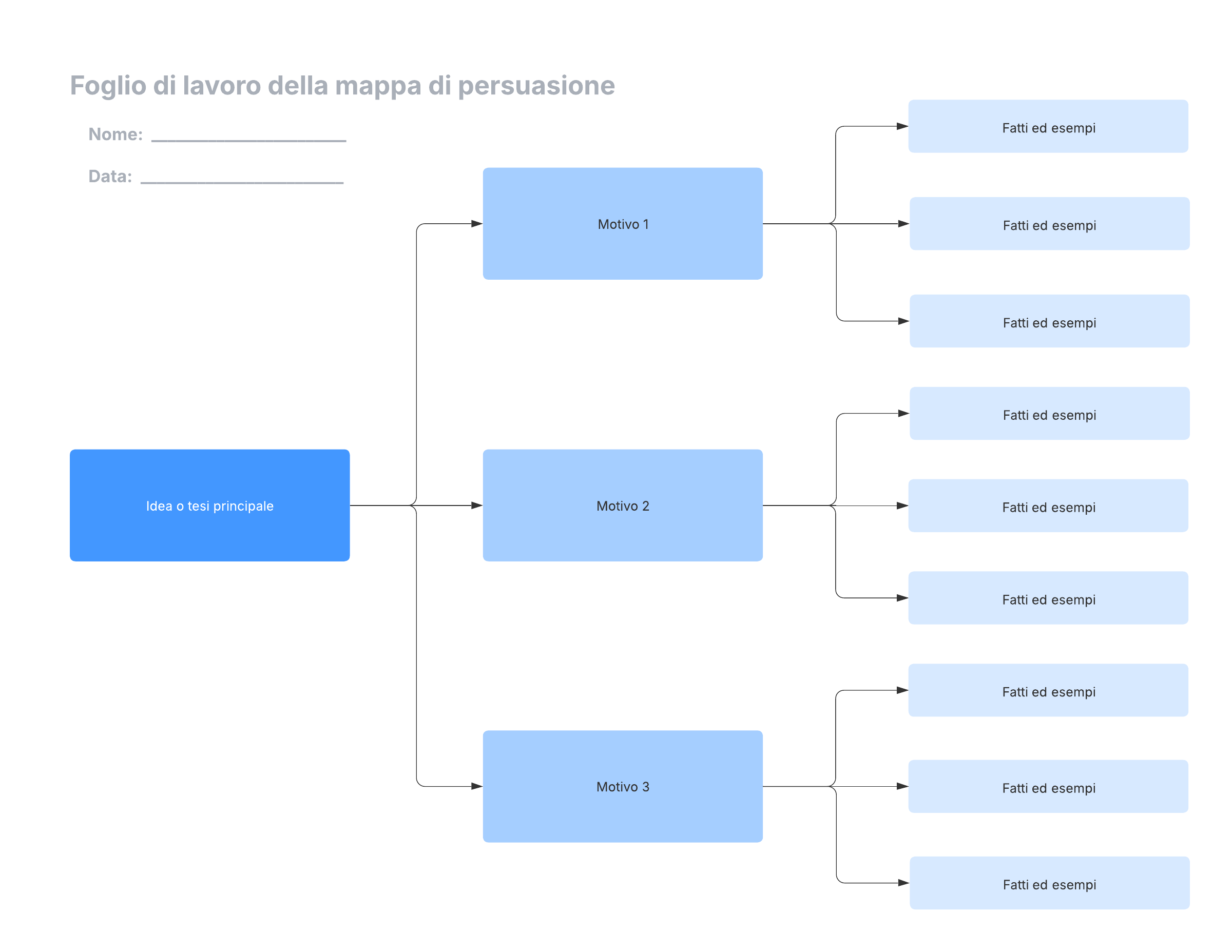 - Organizzare graficamente gli argomenti per un saggio o un dibattito persuasivo.
