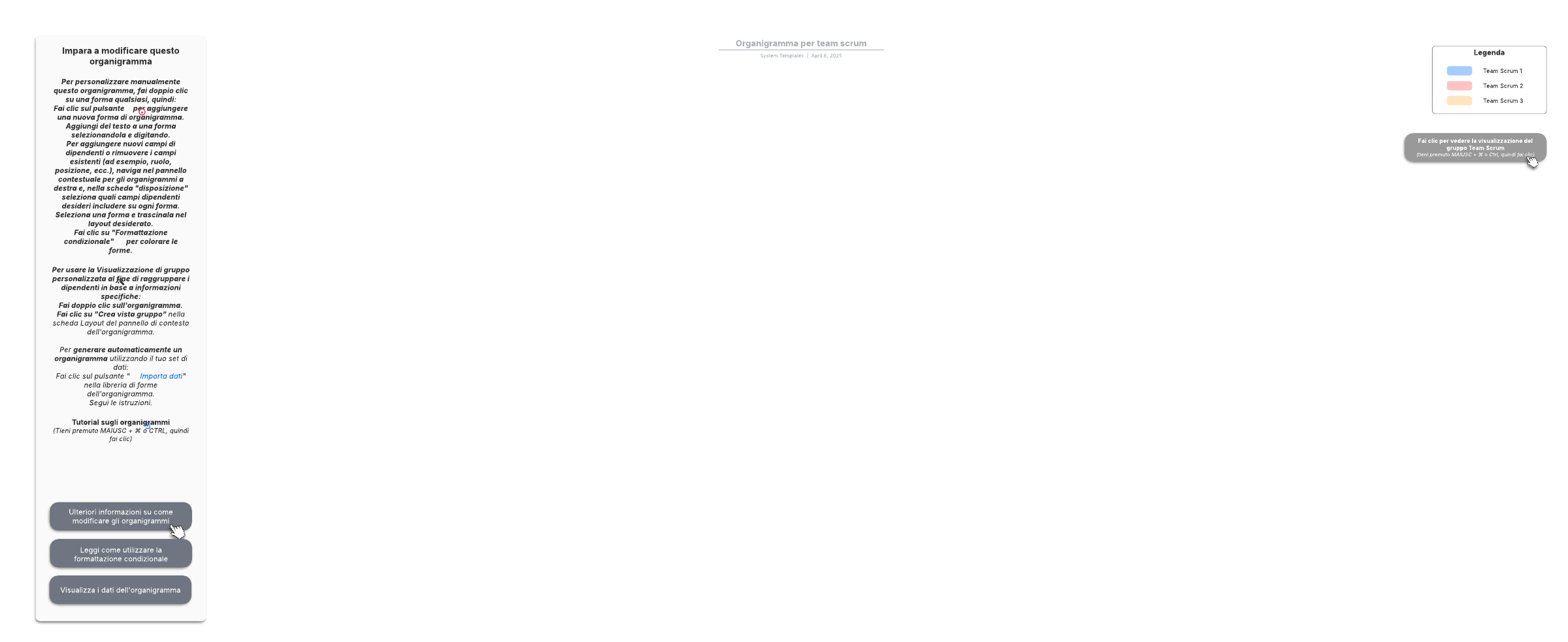 Apri questo modello per visualizzare un esempio dettagliato di un organigramma per Scrum Team, che puoi personalizzare in base al tuo caso d'uso.