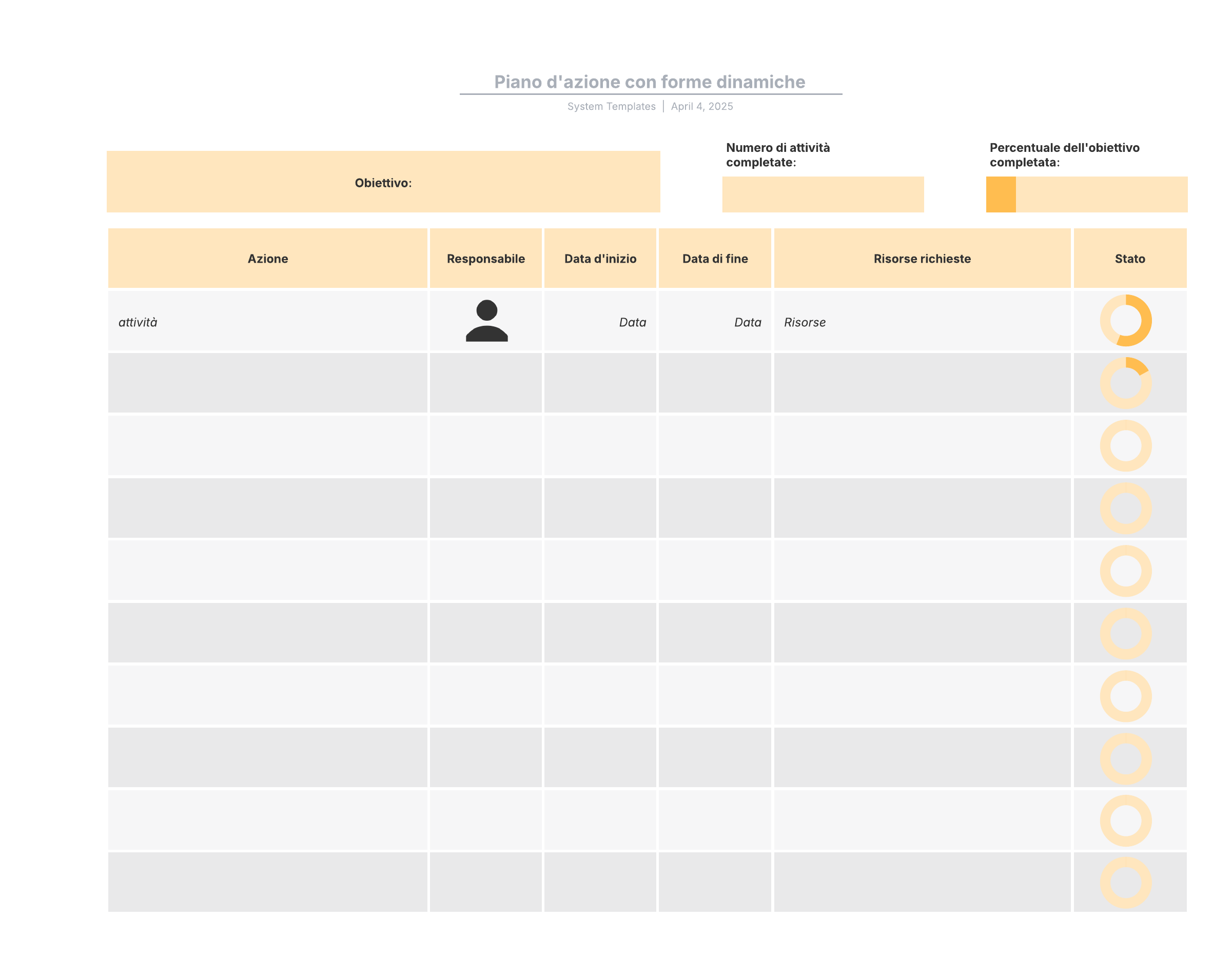 Piano d'azione con forme dinamiche