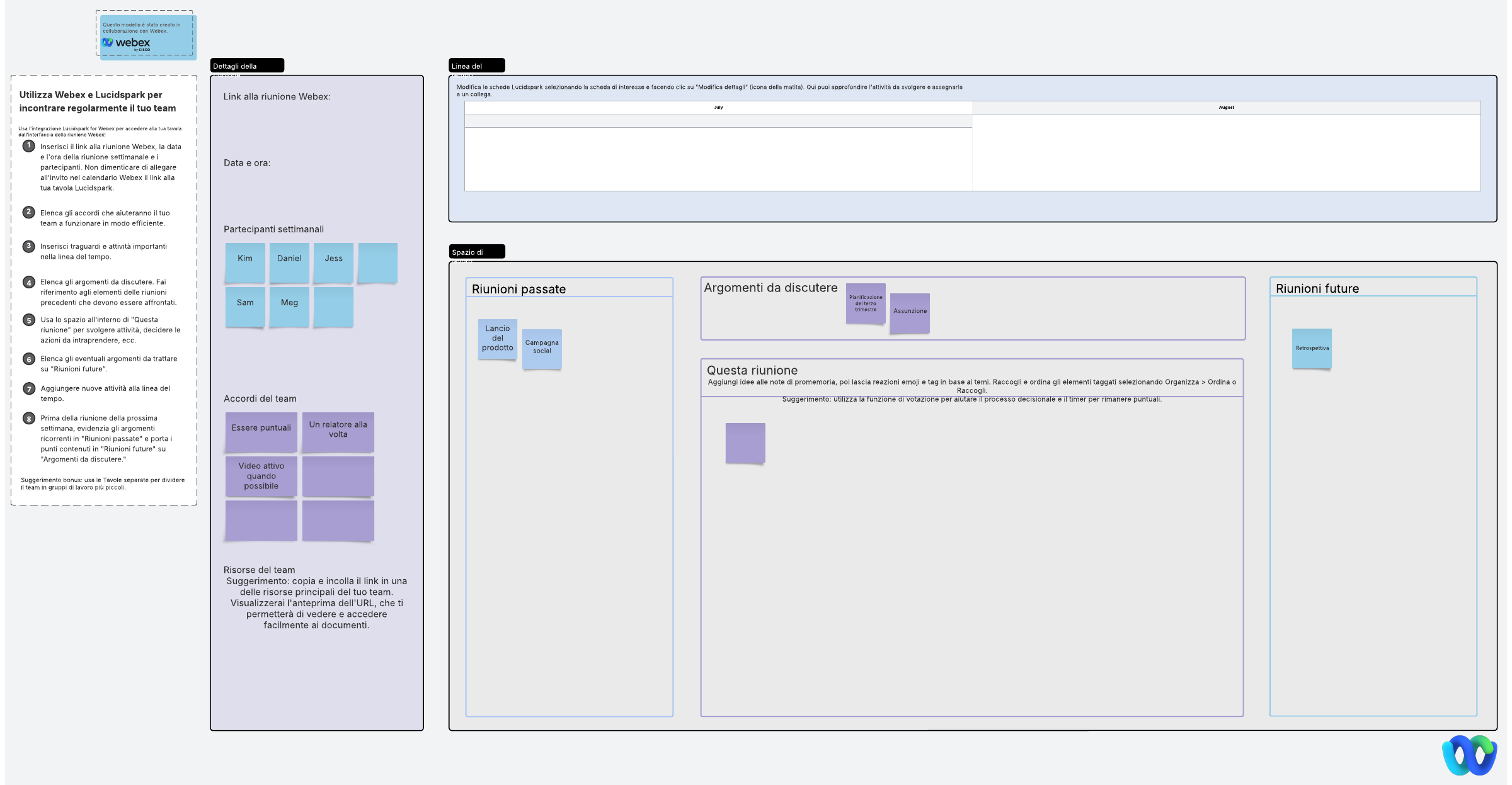 Incontra regolarmente il tuo team utilizzando l'integrazione Lucidspark for Webex.