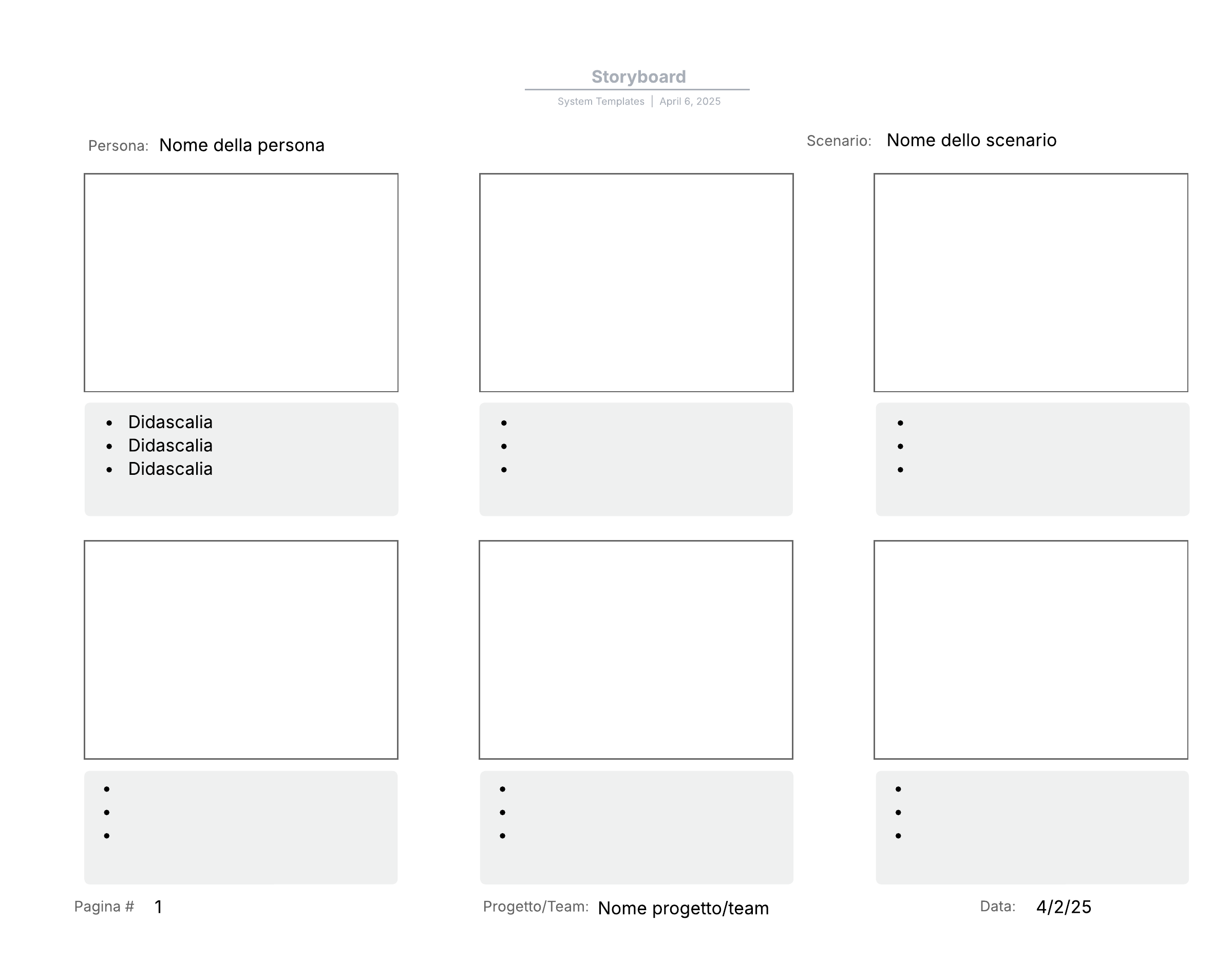 Apri questo modello e aggiungi contenuti per adattare questo diagramma di storyboard al tuo caso d'uso.