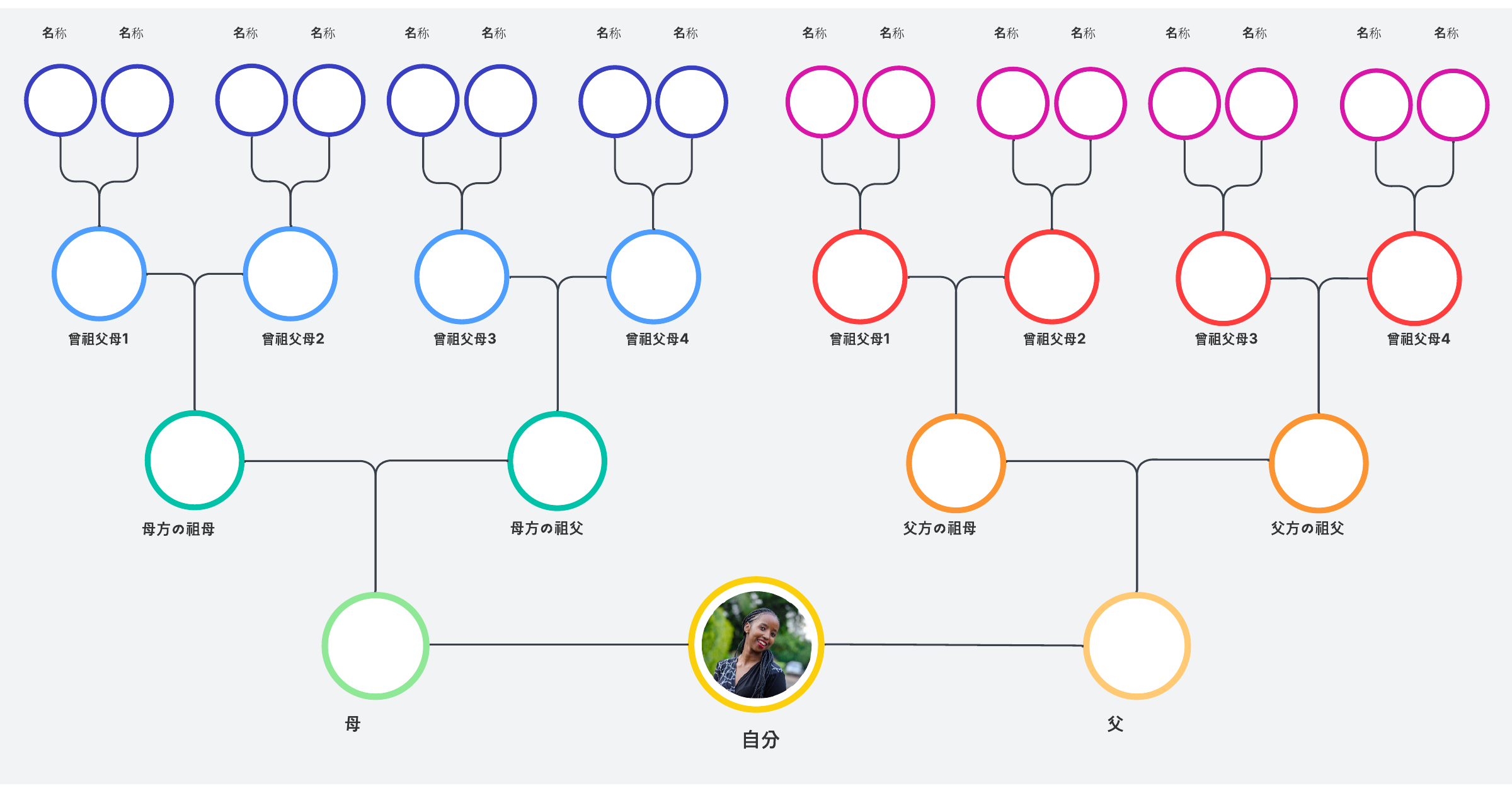 家族関係を視覚化するのに役立つ家系図テンプレートです。
