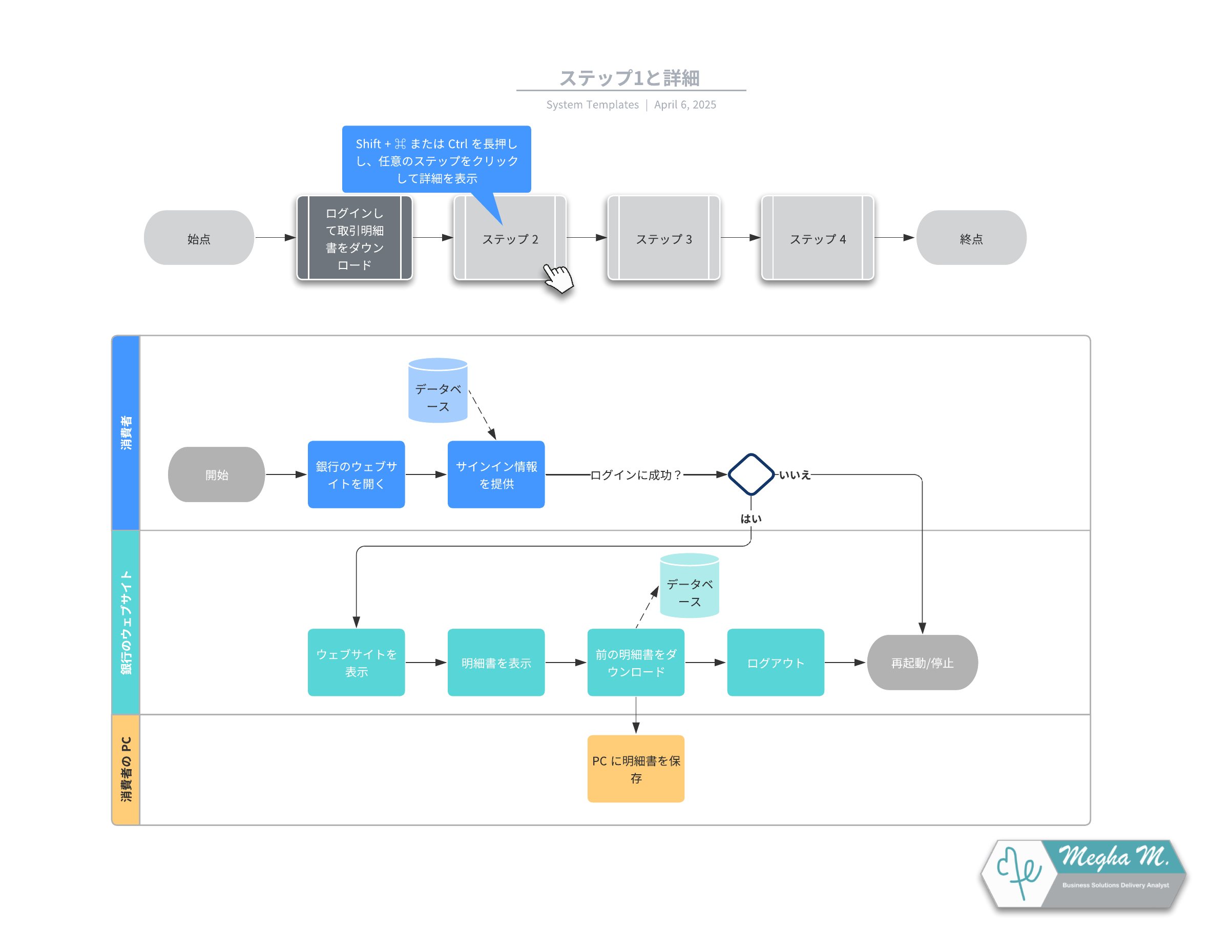 ユースケースに合わせてこの詳細なフローチャートをカスタマイズするには、テンプレートを開き、コンテンツを追加します。