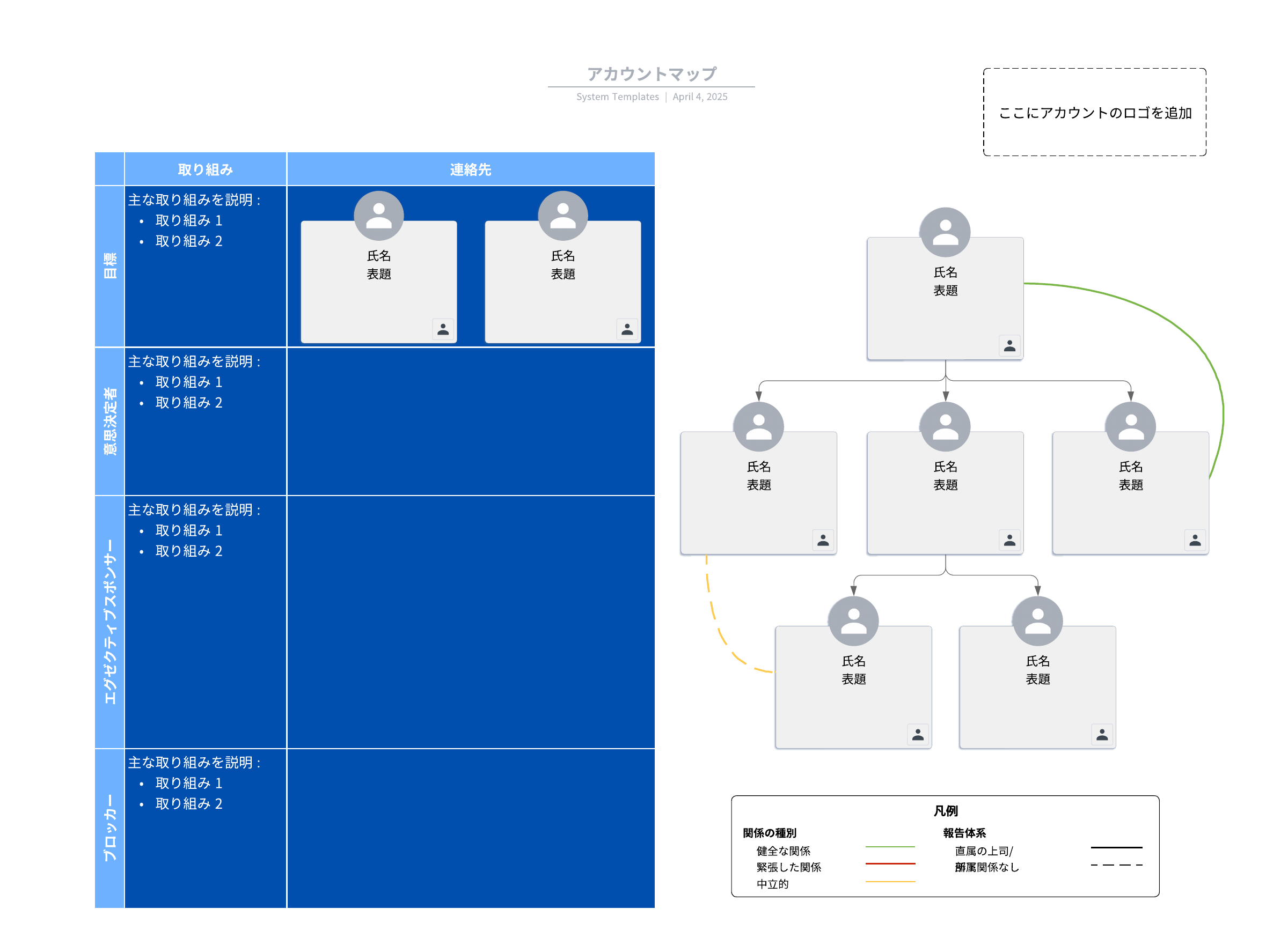 このアカウントマップテンプレートは以下の用途に役立ちます。