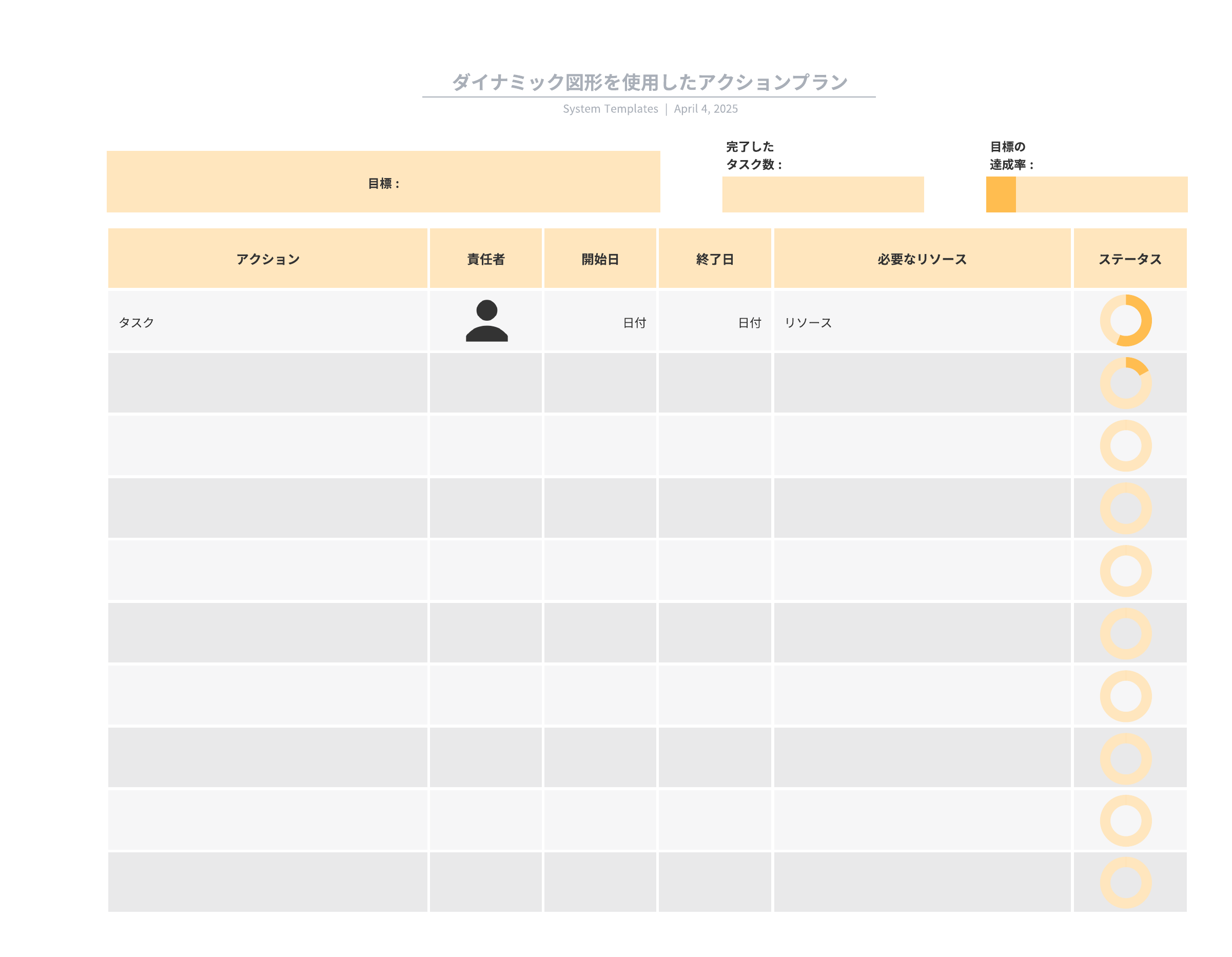 ビジネスにも欠かせないアクションプランをLucidchartのアクションプランテンプレートの例から早速学んでみましょう。エクセルやパワポにもエクスポートすることができます。