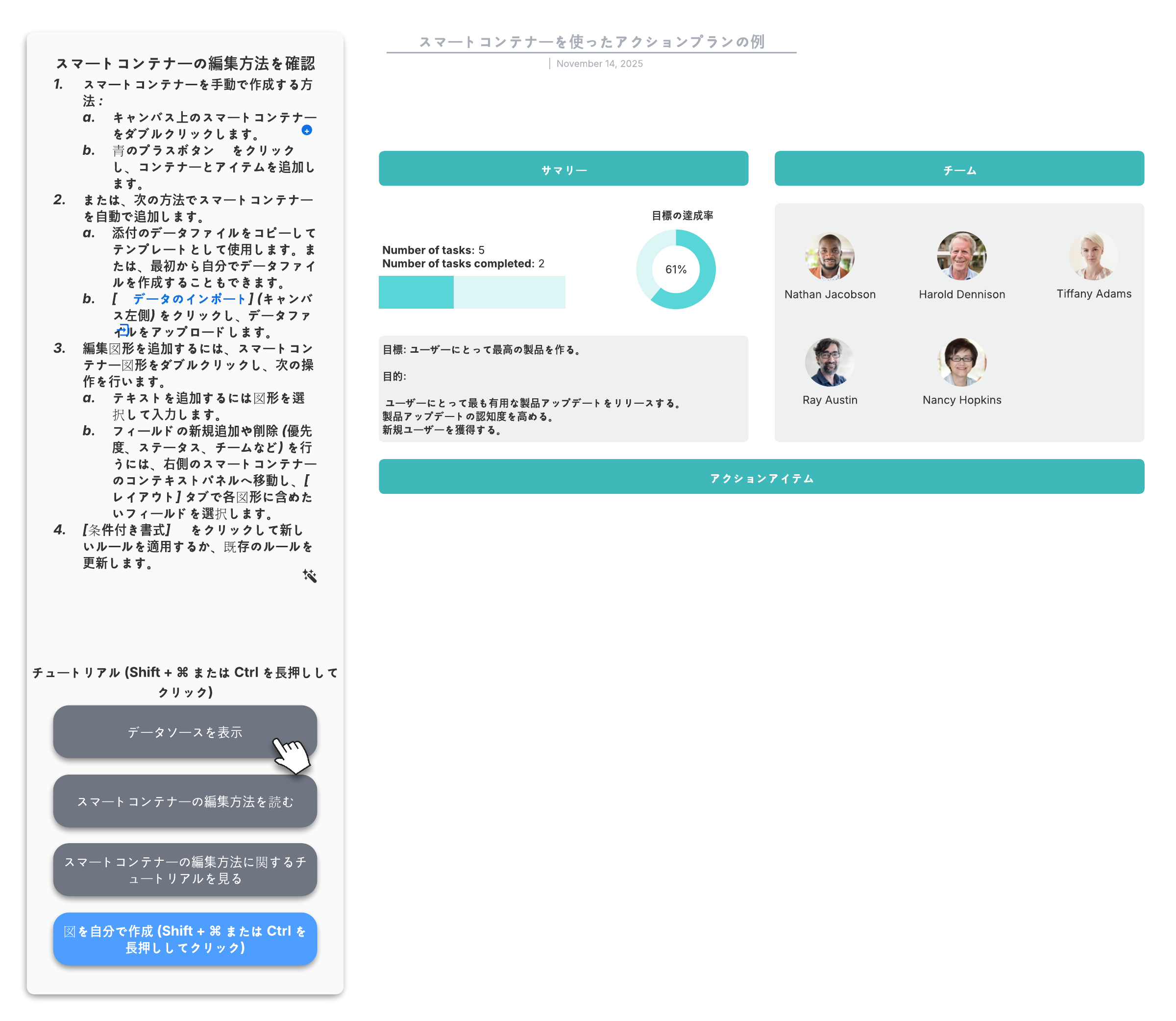 テンプレートを開き、ユースケースに合わせてカスタマイズできるスマートコンテナーを使ったアクションプランの例を詳しく確認してみましょう。