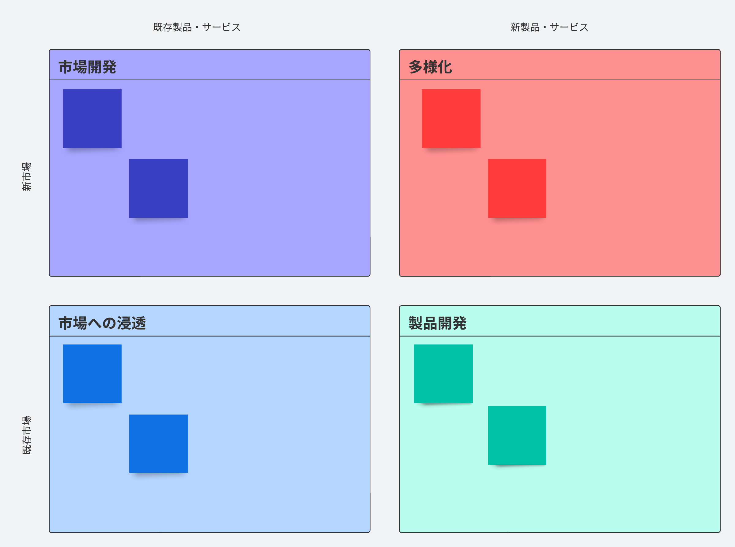 潜在的なリスクの評価、ビジネスの拡大、新規市場の開拓に適したマトリックスです。