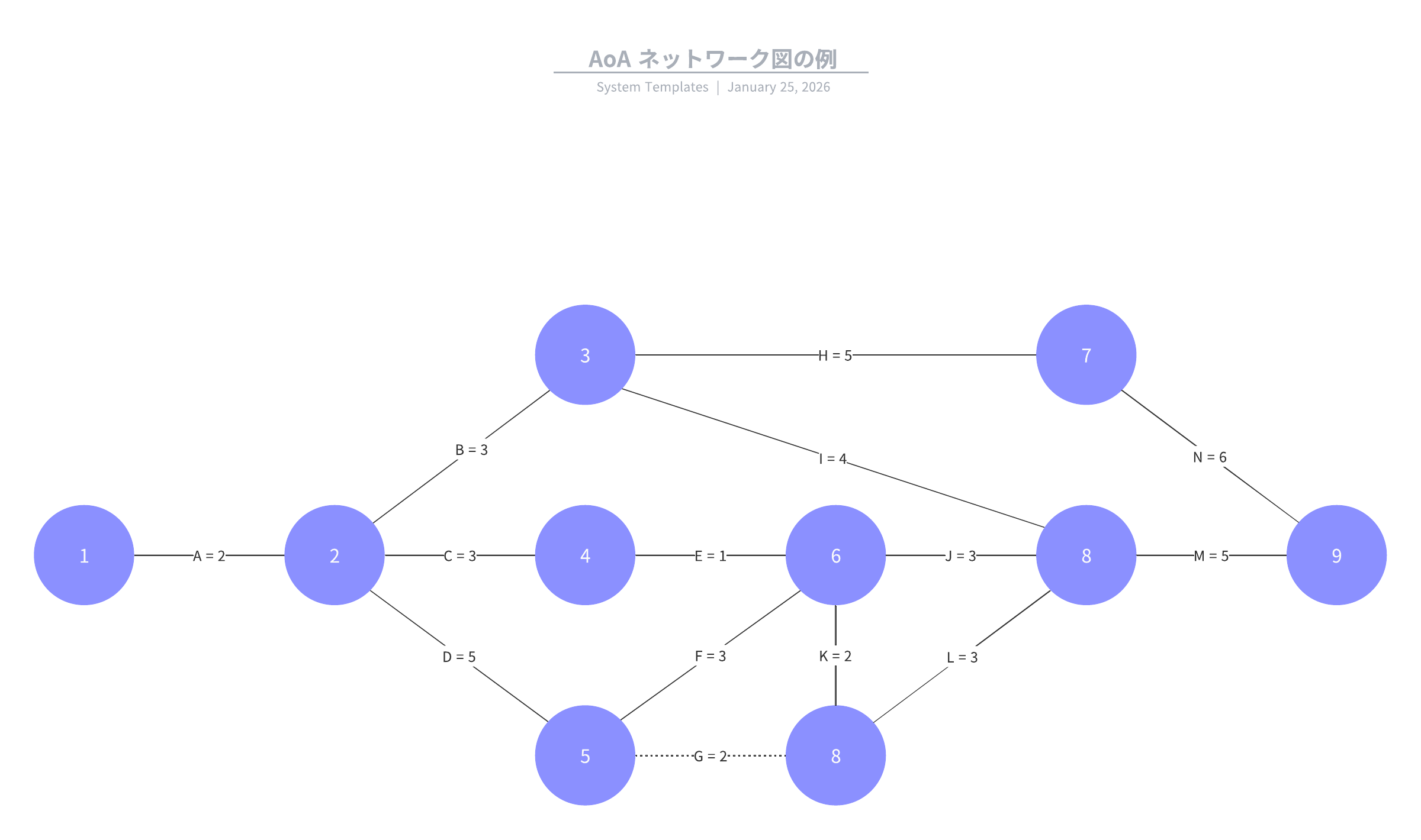 この AOA ネットワーク図のテンプレートは以下の用途に役立ちます。