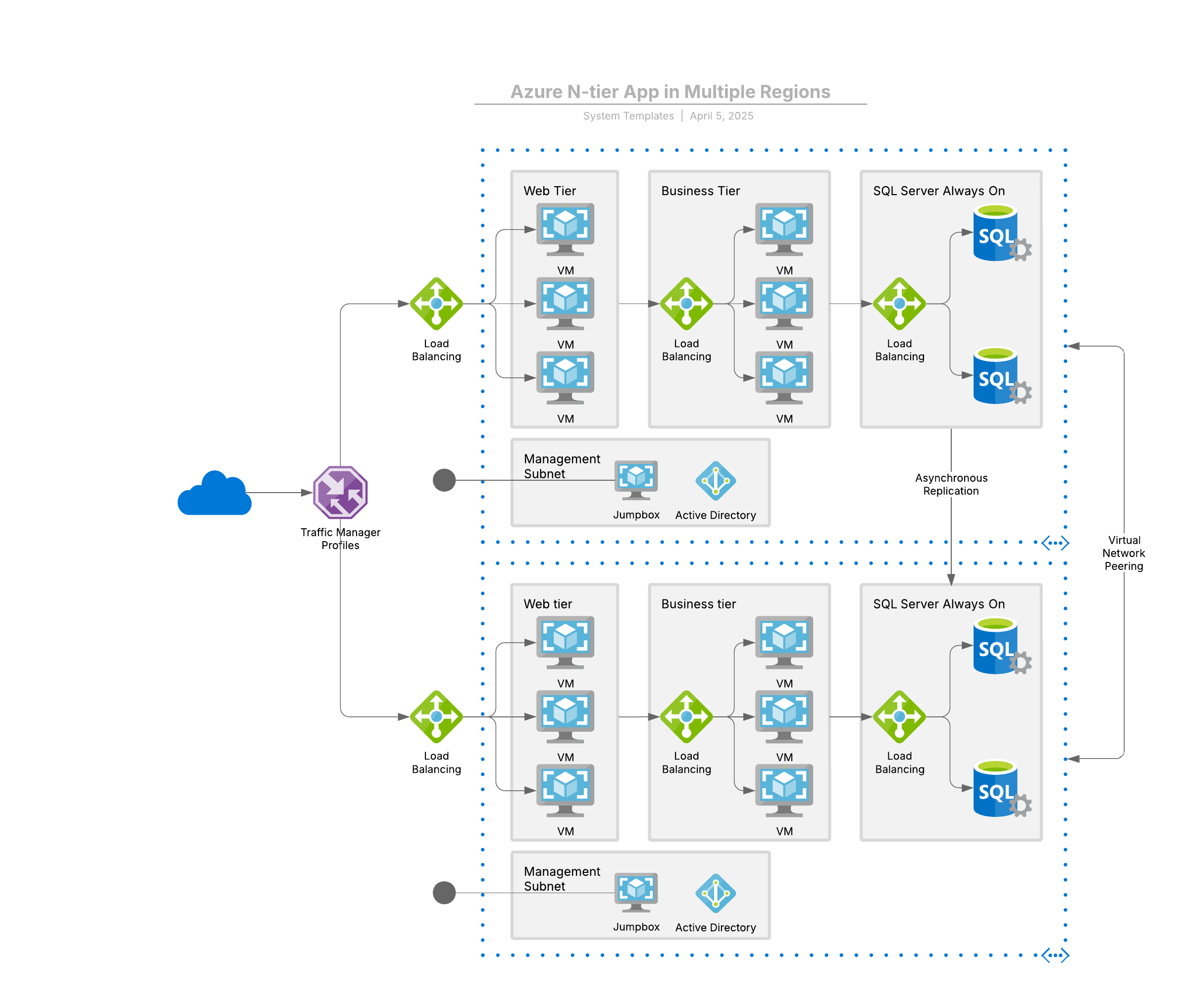 Azure (アジュール)マルチリージョン n 層アプリケーション参考例