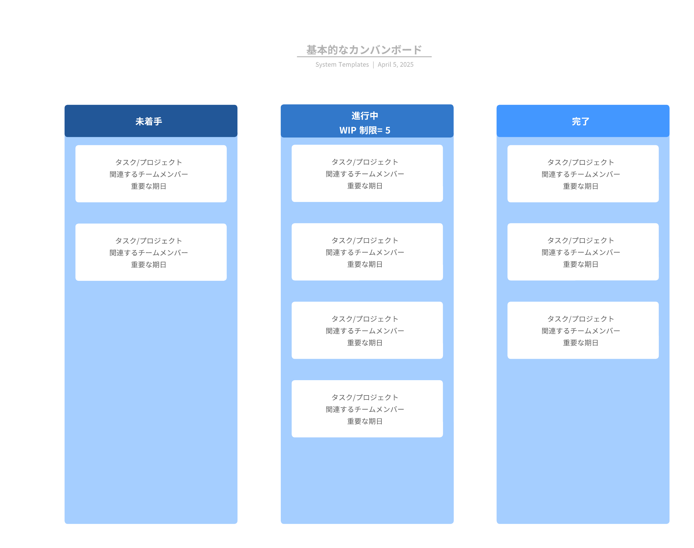 この基本的なカンバンボード図は以下のような用途に役立ちます。