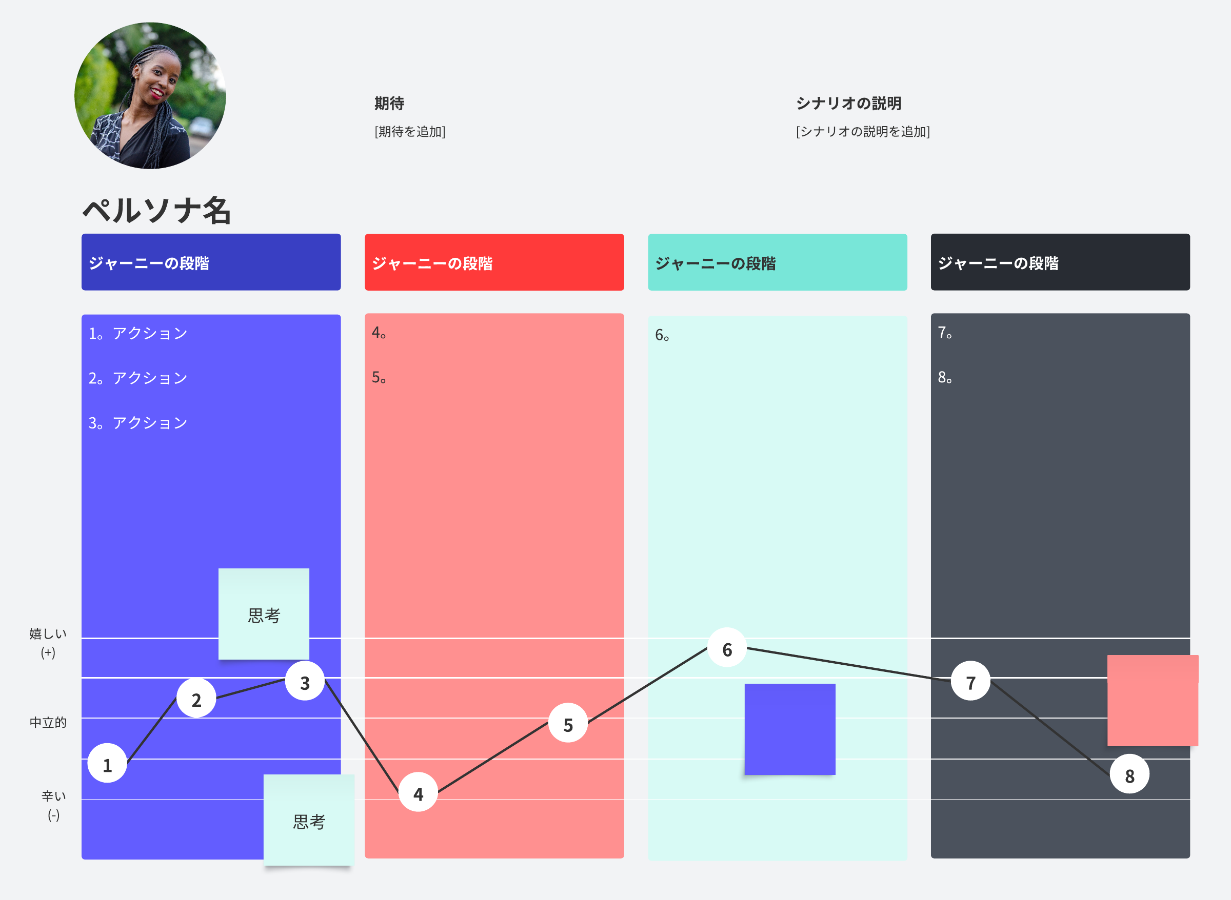 カスタマージャーニーマップテンプレートを使ってみましょう。手順は次のとおりです。