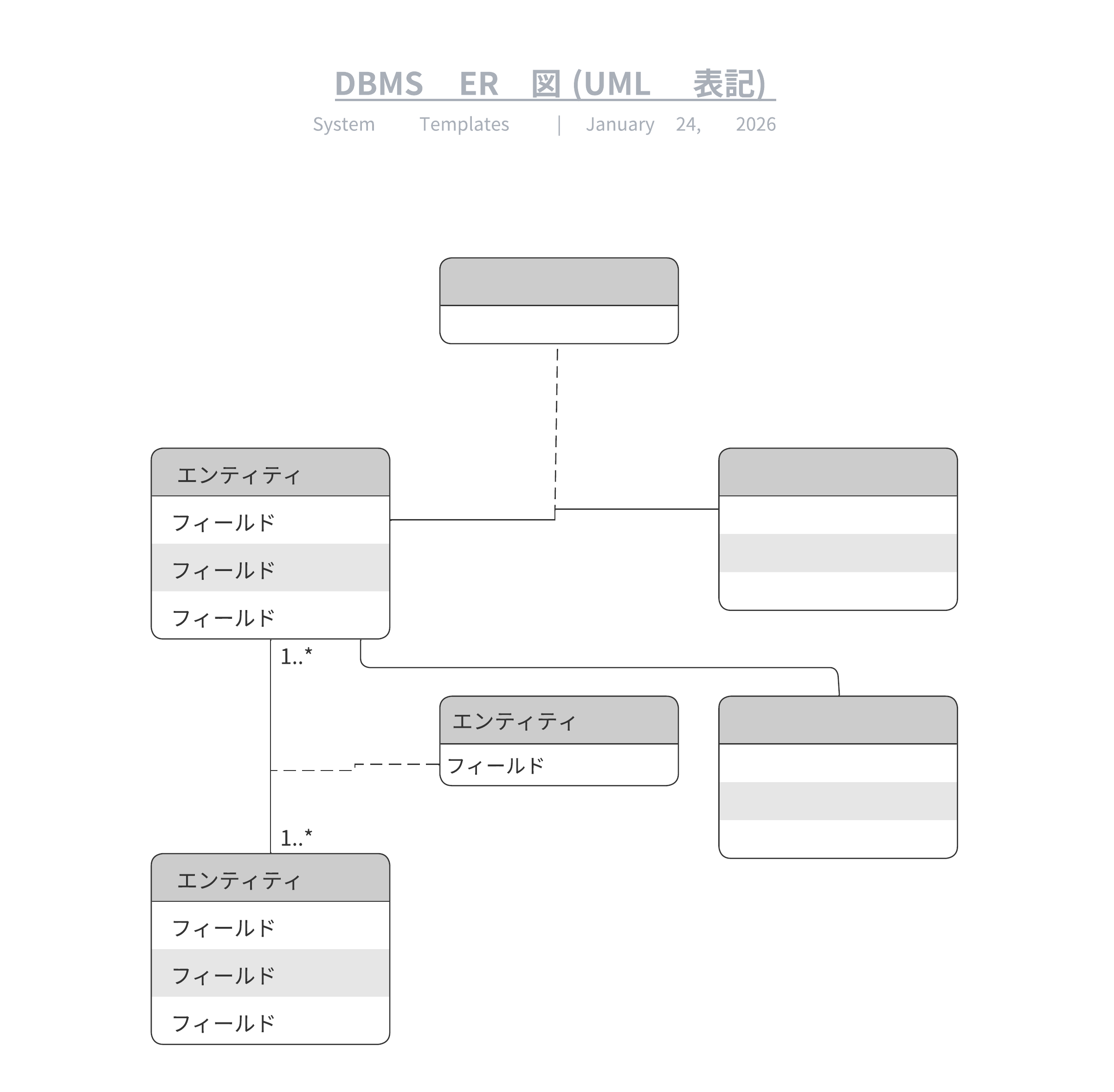 次のような用途で役立つ DBMS ER 図例のテンプレートです。