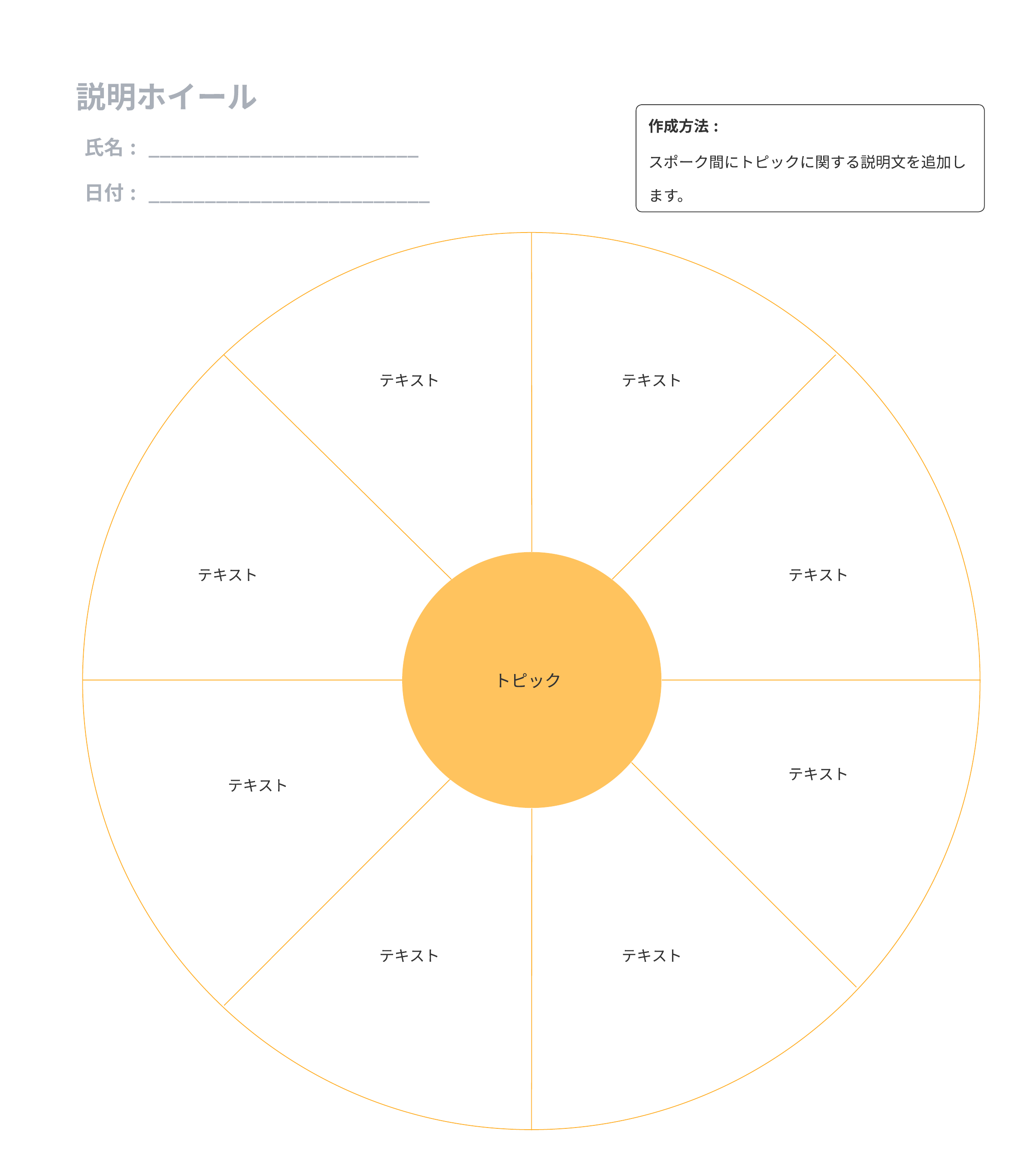 説明ホイール図をカスタマイズするには、このテンプレートを開き、コンテンツを追加します。