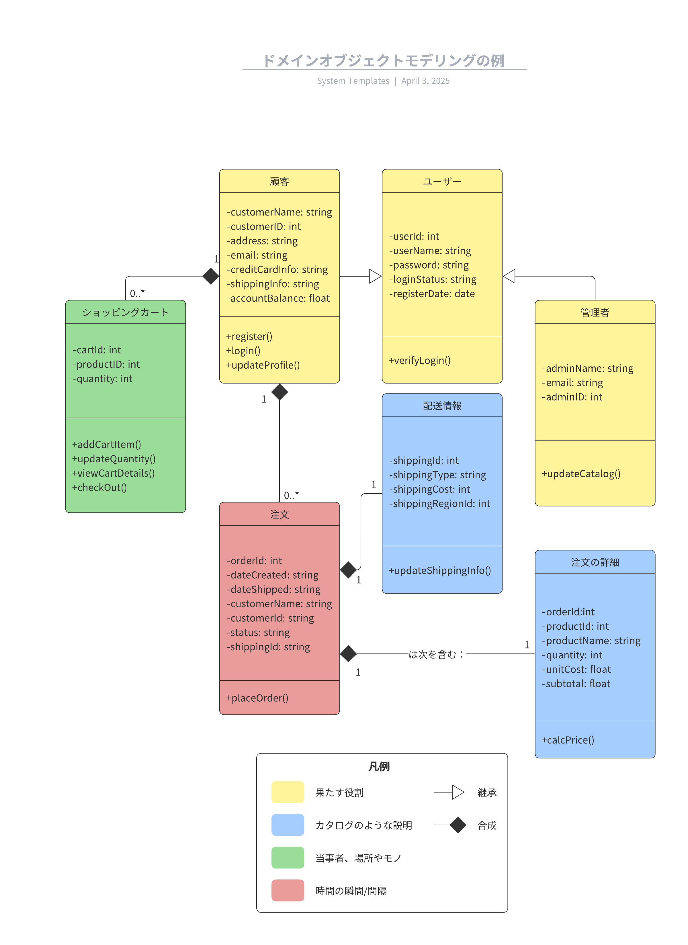 このドメインオブジェクトモデリングの例テンプレートは以下のような用途に役立ちます。