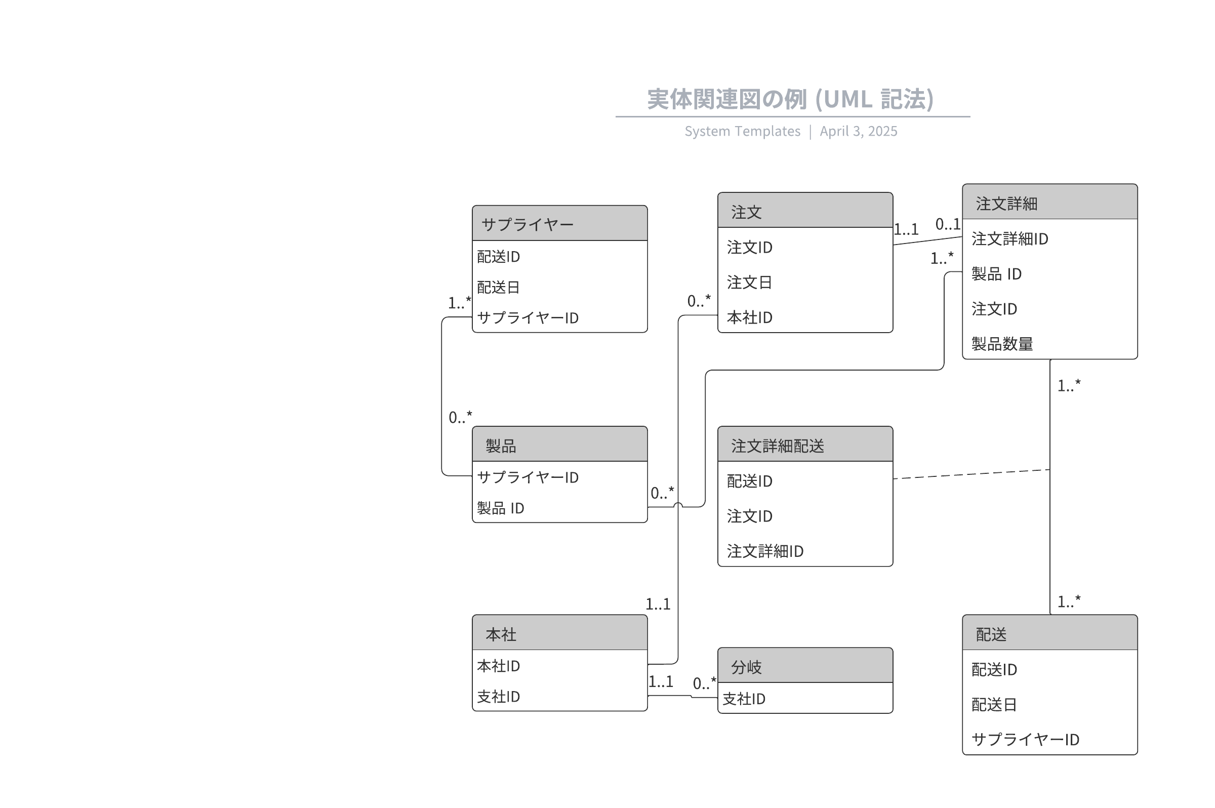 次のような用途で役立つ実体関連図例のテンプレートです。