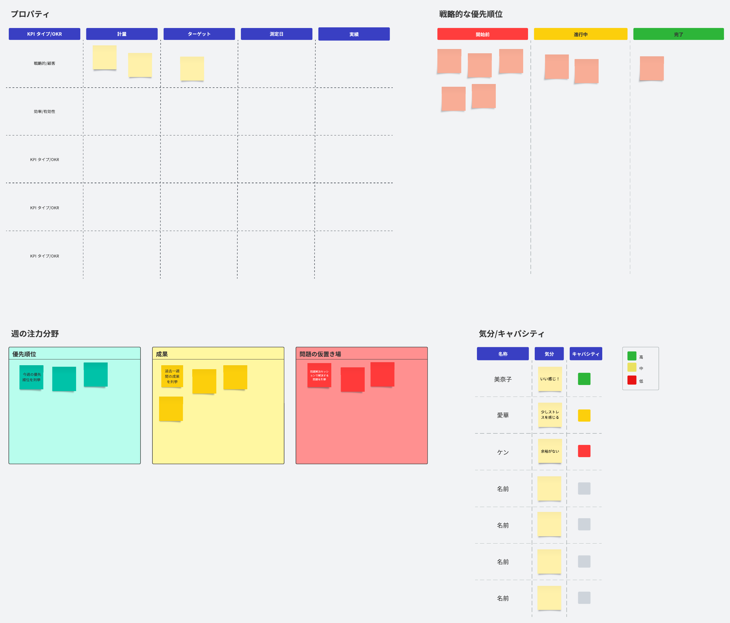 ハドルボードはチームの取り組みに関する状況、進捗や課題を示すのに役立ちます。