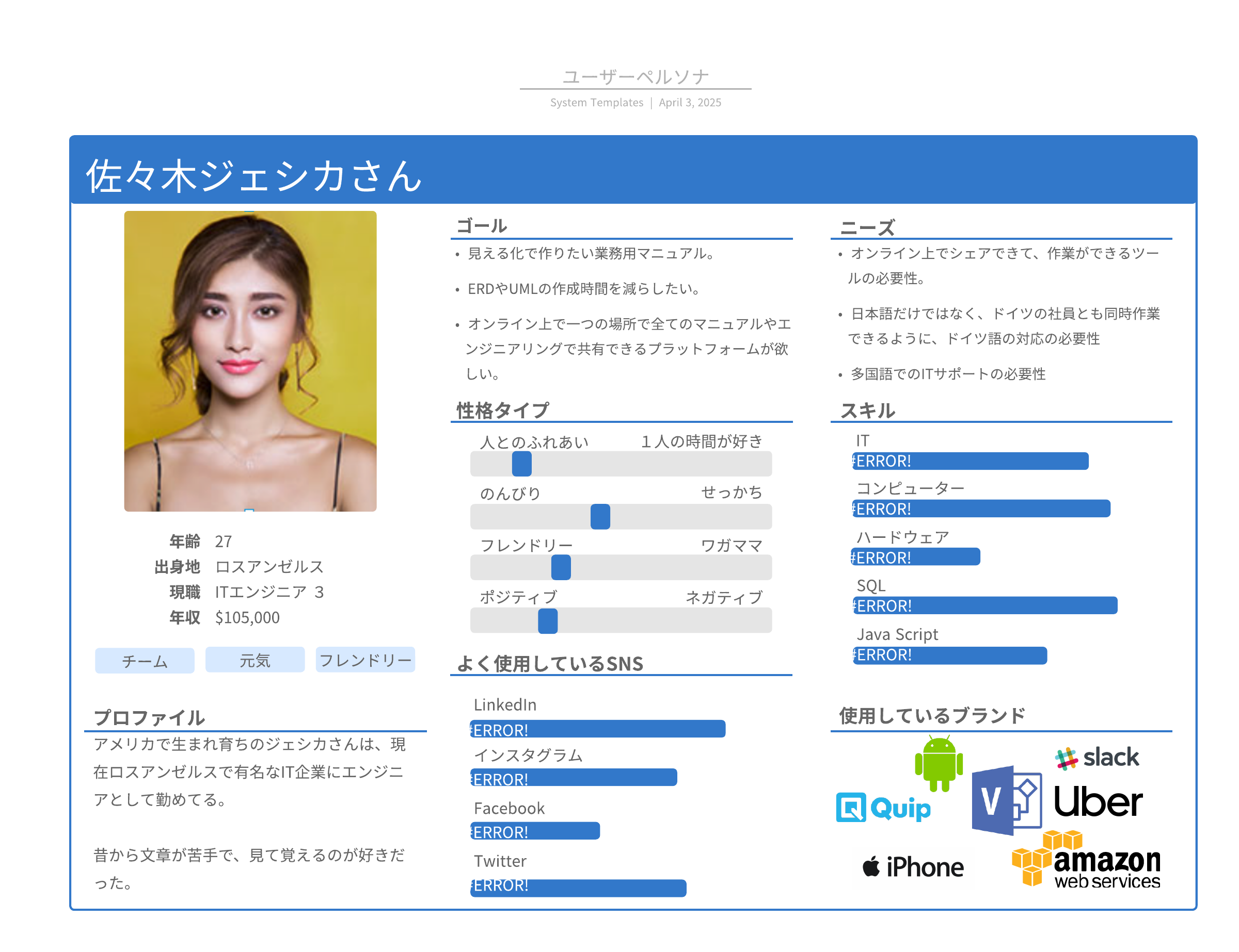 このユーザーペルソナを利用して、あたなの顧客のペルソナをより理解していきましょう。