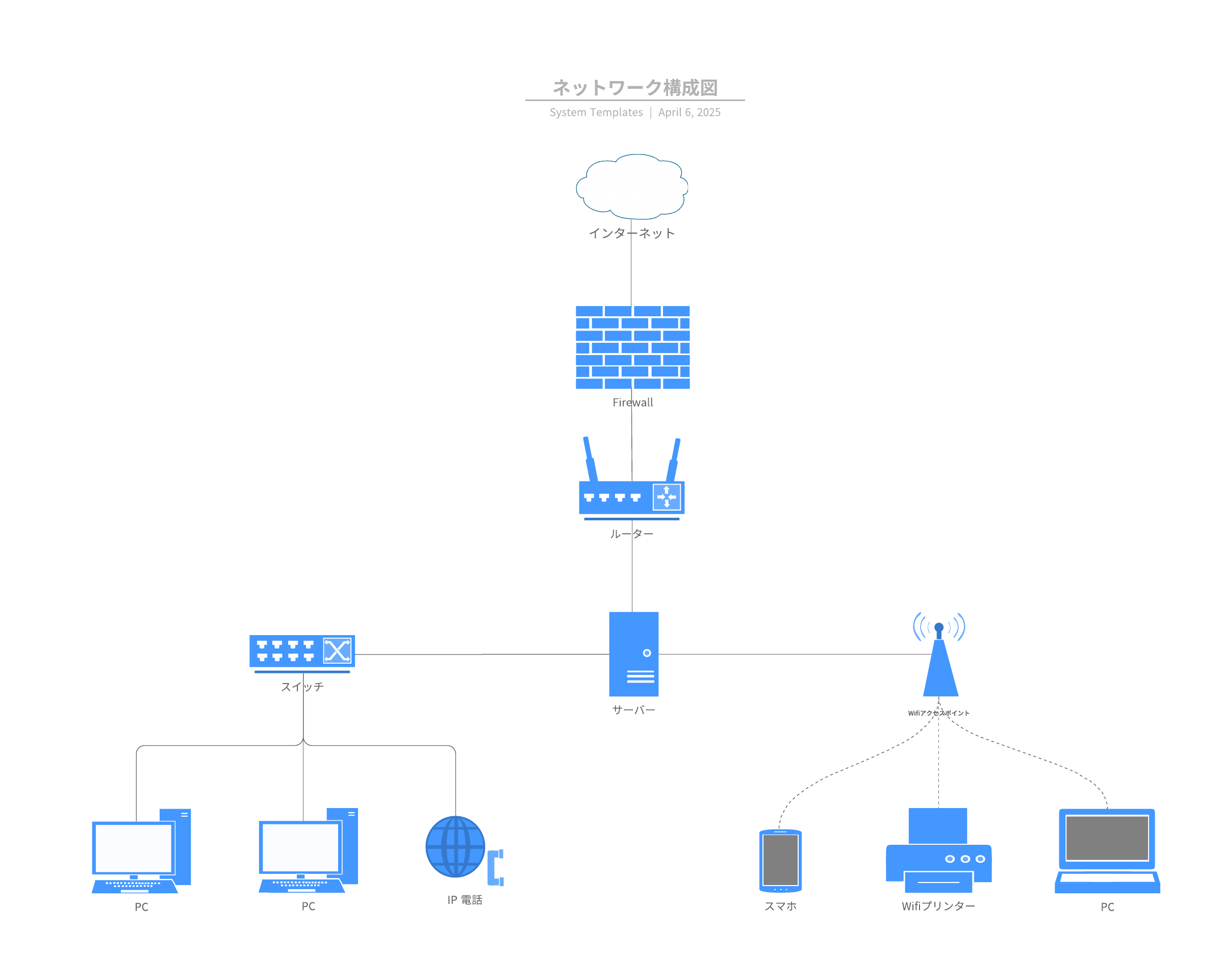 このネットワーク構成図のテンプレートを利用してネットワーク内の構成を理解していきましょう。