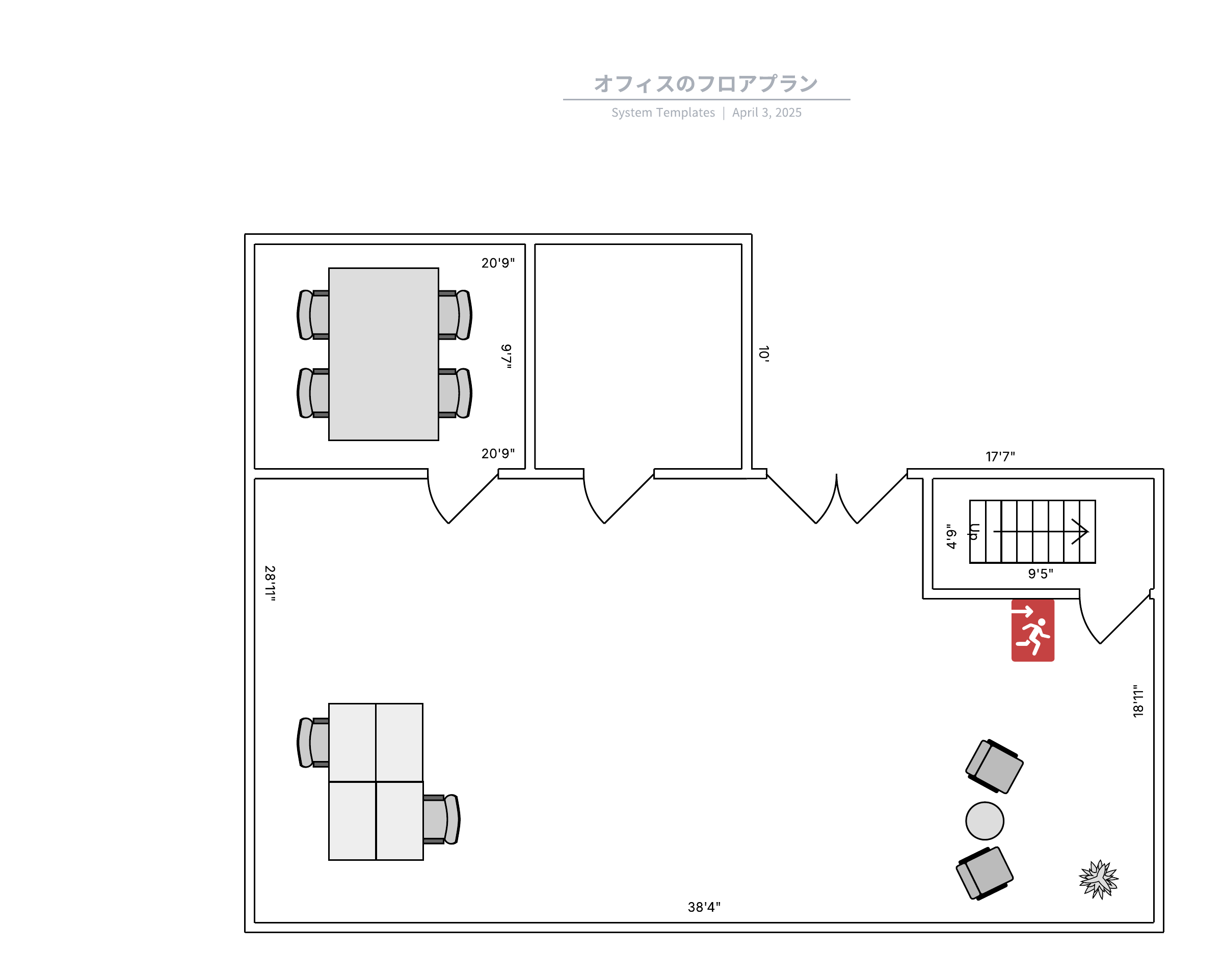 このオフィスの間取り図・フロアプラン参考テンプレートを元に、自社のオフィスのインテリア計画を行いましょう。