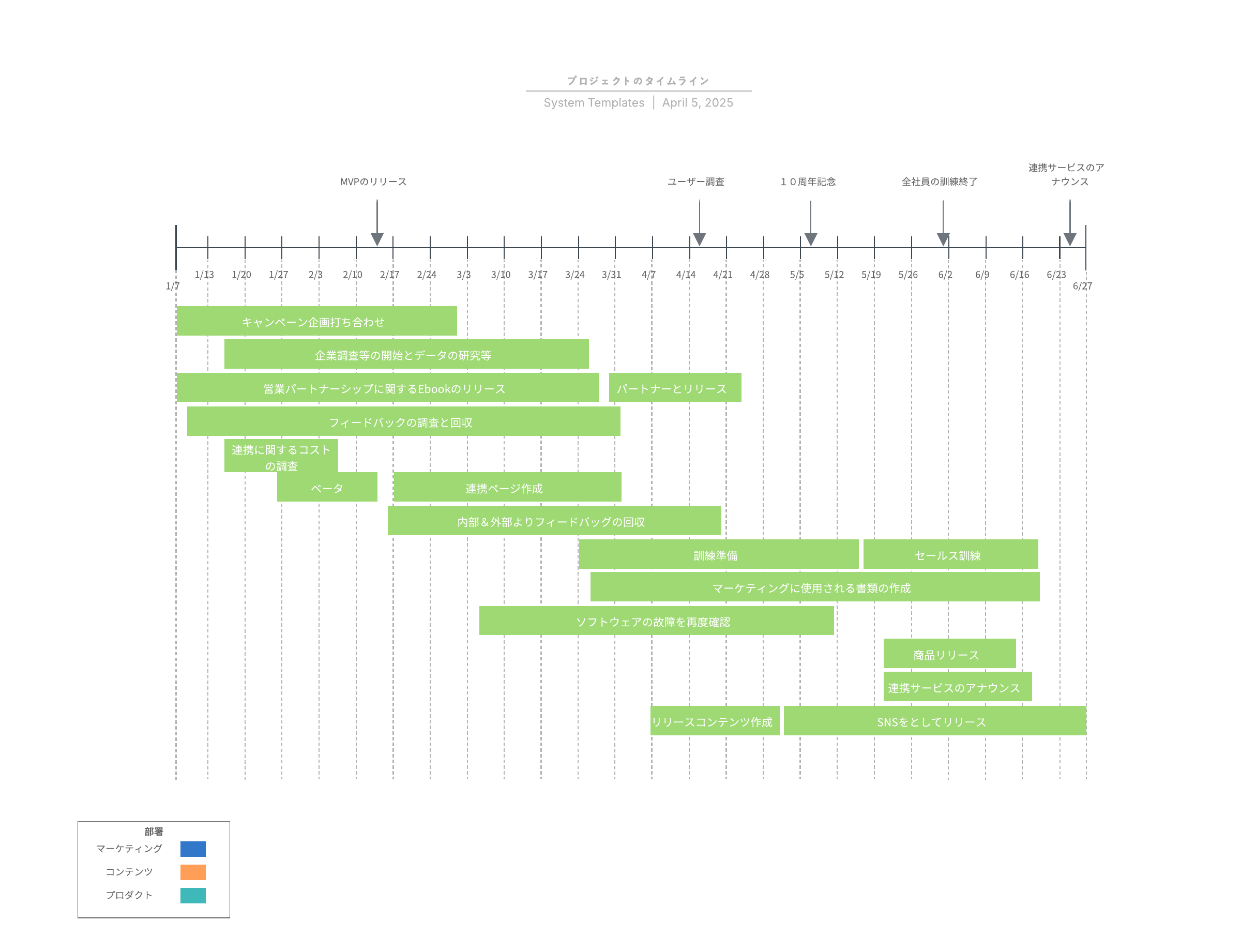 このタイムラインを利用して、プロジェクトに向けた期間を立ていきましょう。