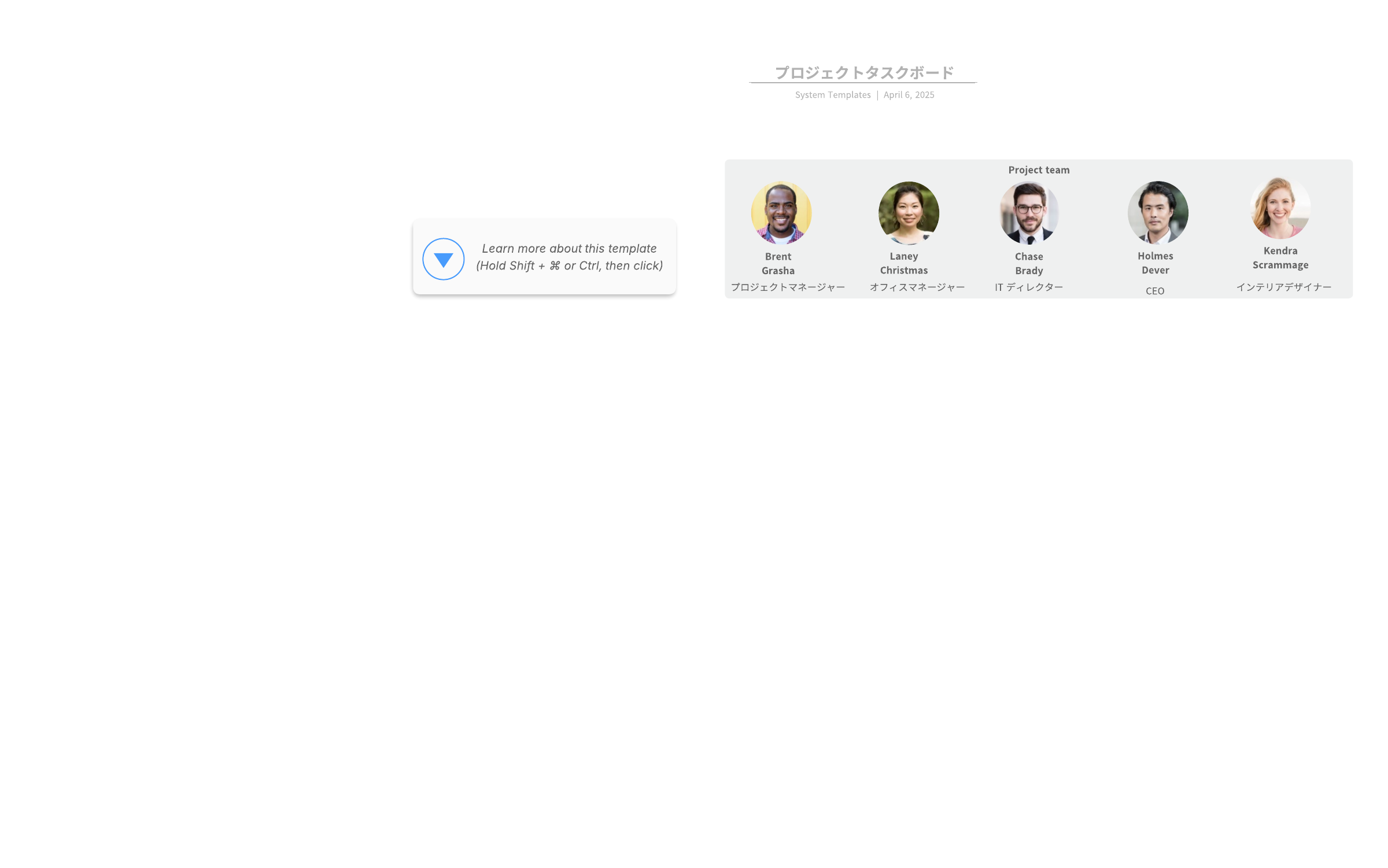 テンプレートを開き、ユースケースに合わせてカスタマイズできるスマートコンテナーを使ったプロジェクトタスクボードテンプレートの例を詳しく確認してみましょう。