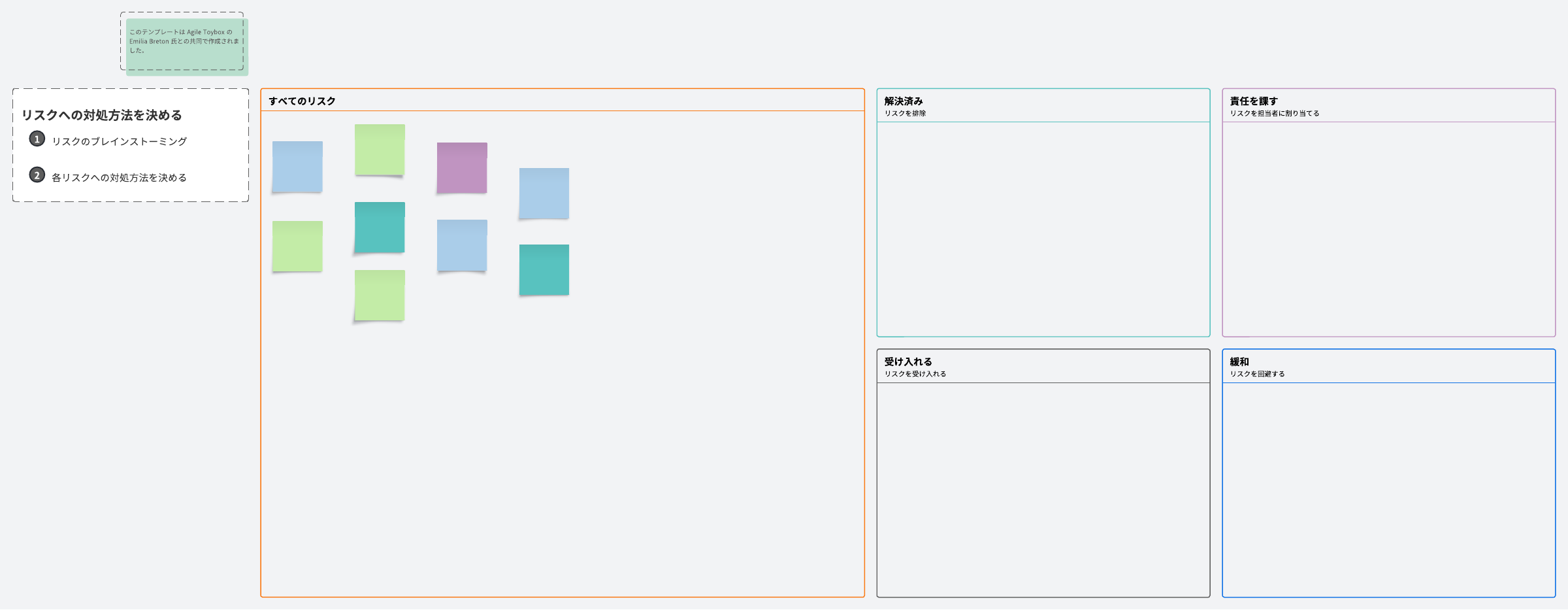 このROAMボードテンプレートで、チームがリスクに取り組むための行動計画を作成します。