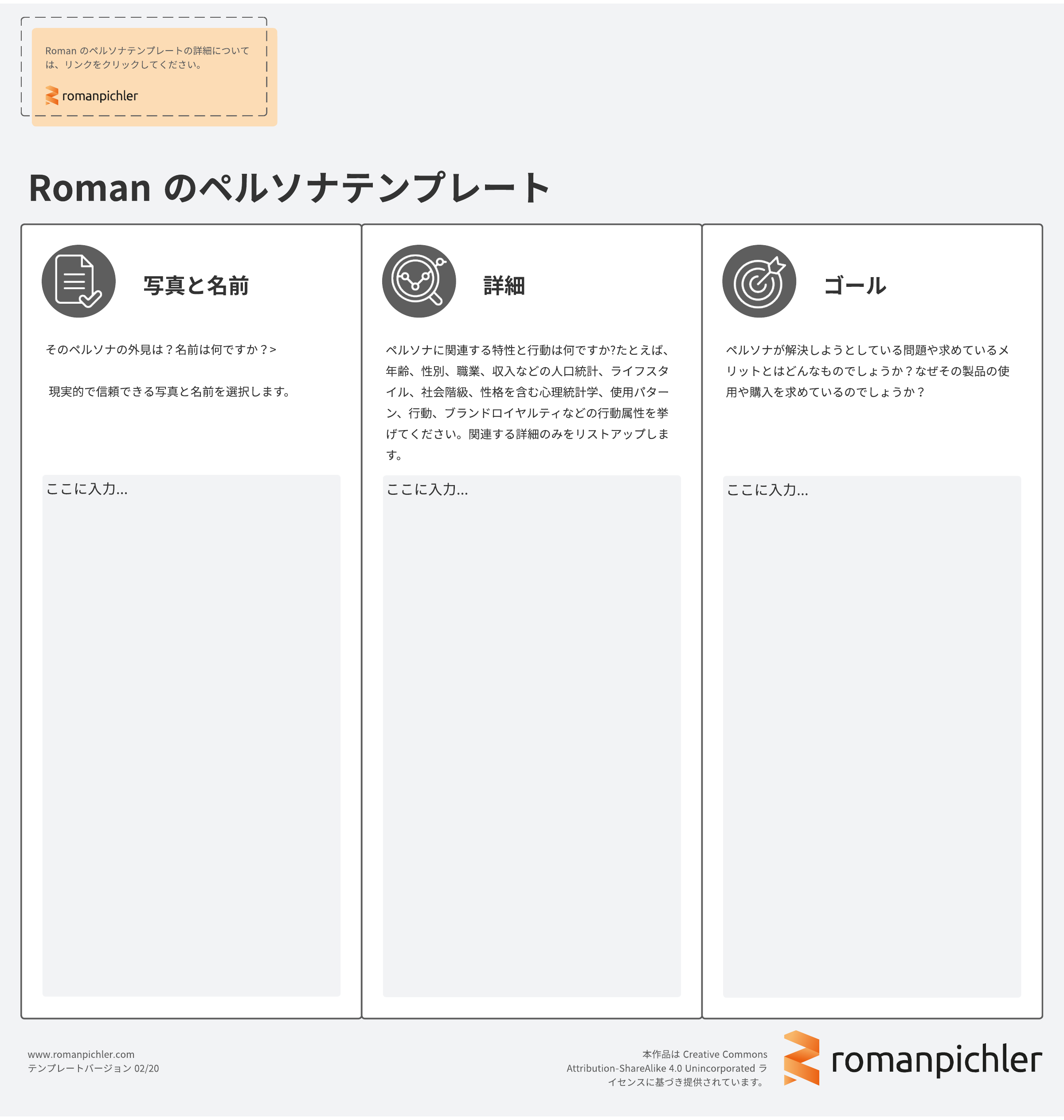 Roman のペルソナテンプレートは、ペルソナを作成するためのシンプルで効果的なアプローチです。
