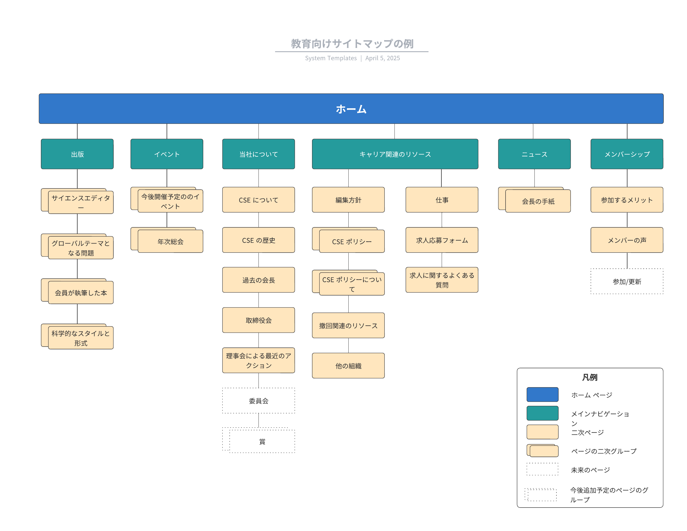 この教育向けサイトマップのテンプレートは以下のような用途に役立ちます。