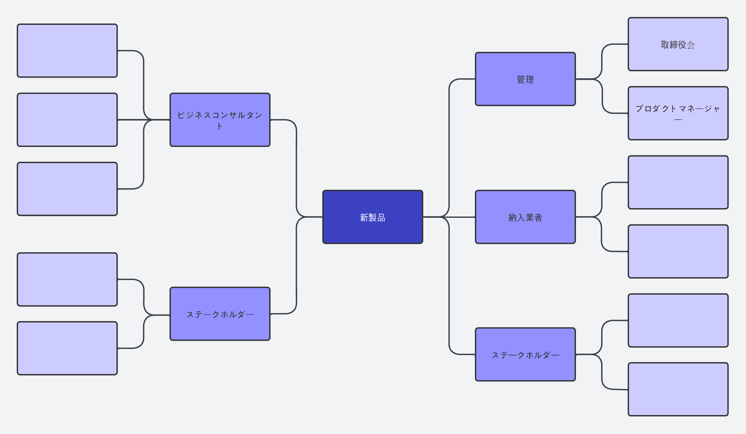 プロジェクトのステークホルダーをマッピングし、チームの進捗に与える影響を検討するのに役立つステークホルダーチャートです。