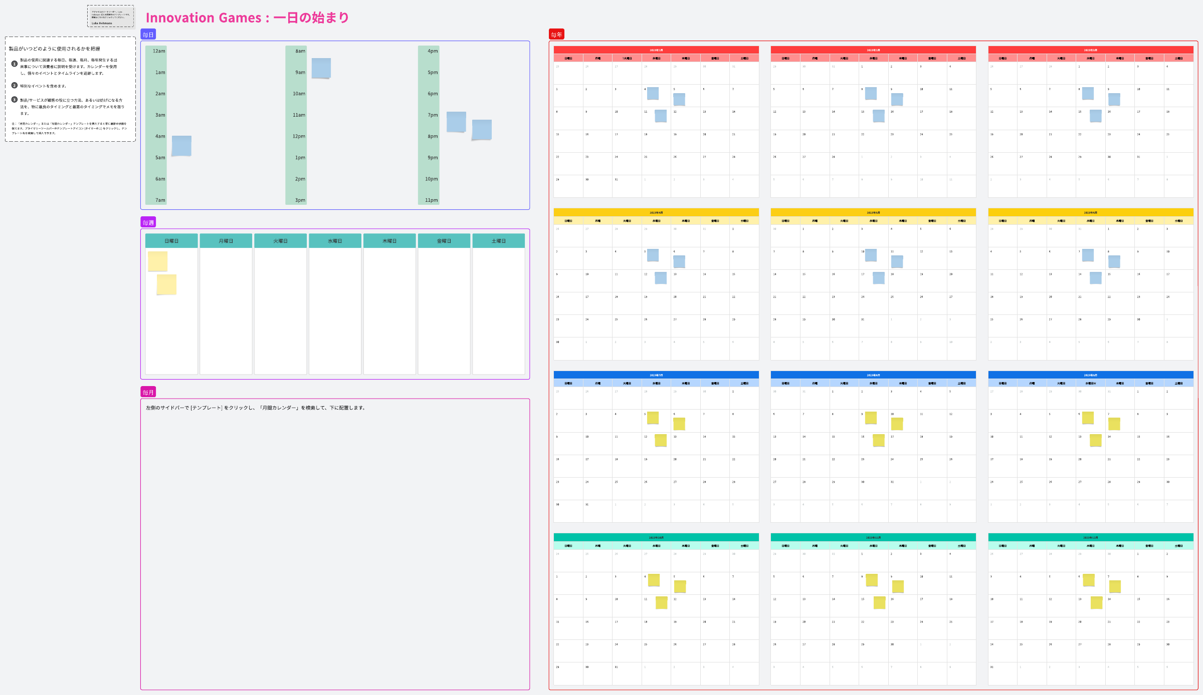 Innovation Games と共同で作成された、顧客による製品の使用方法を把握するのに役立つテンプレートです。